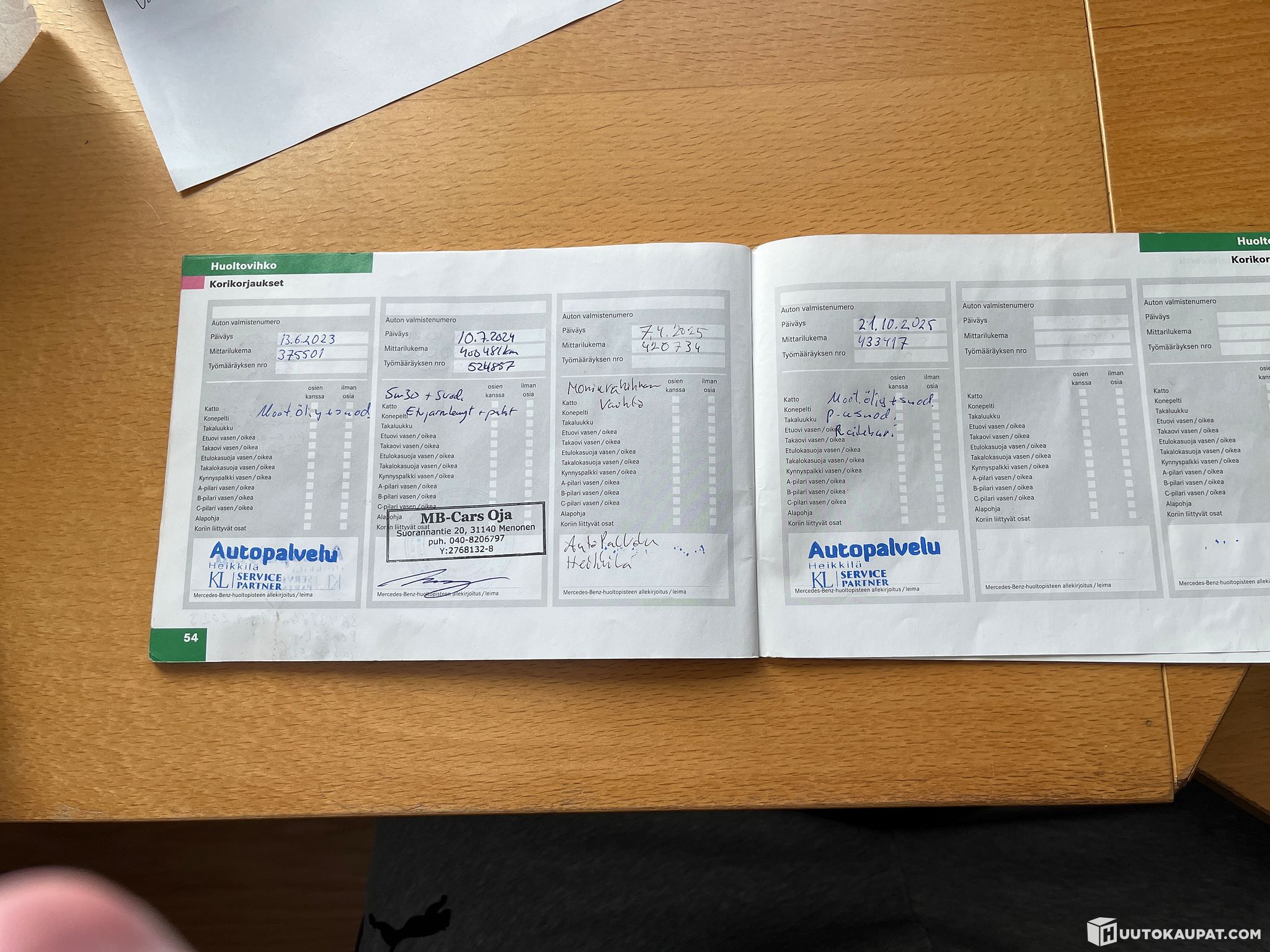 Paljon huoltoja tehty. Viimeisimpänä käsijarrun kengät uusittu, vasen takailmapussi ja hehku. Normaali huolto 21.10.2025