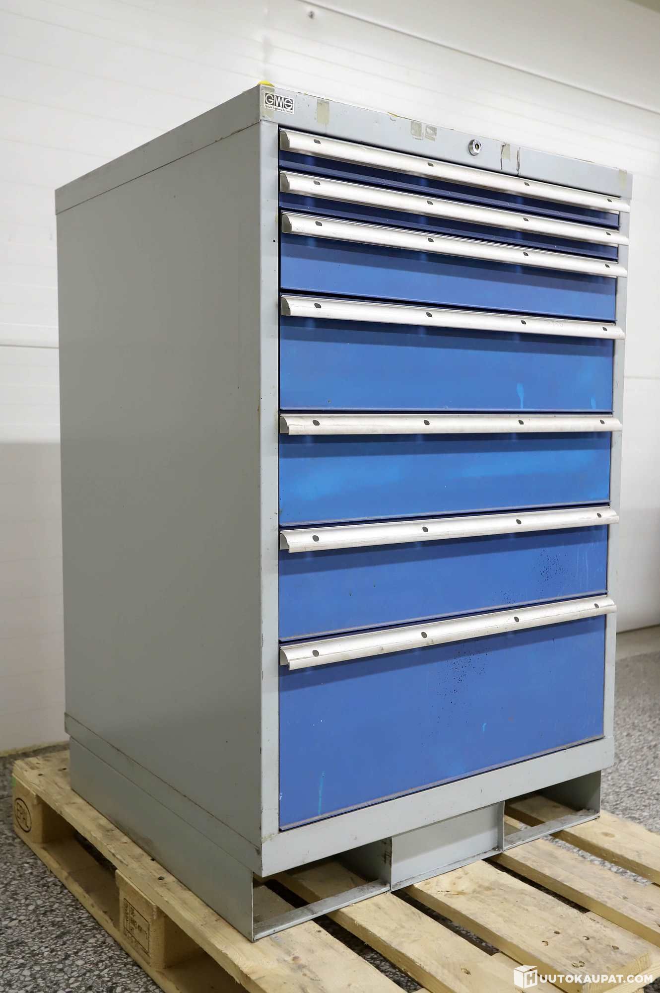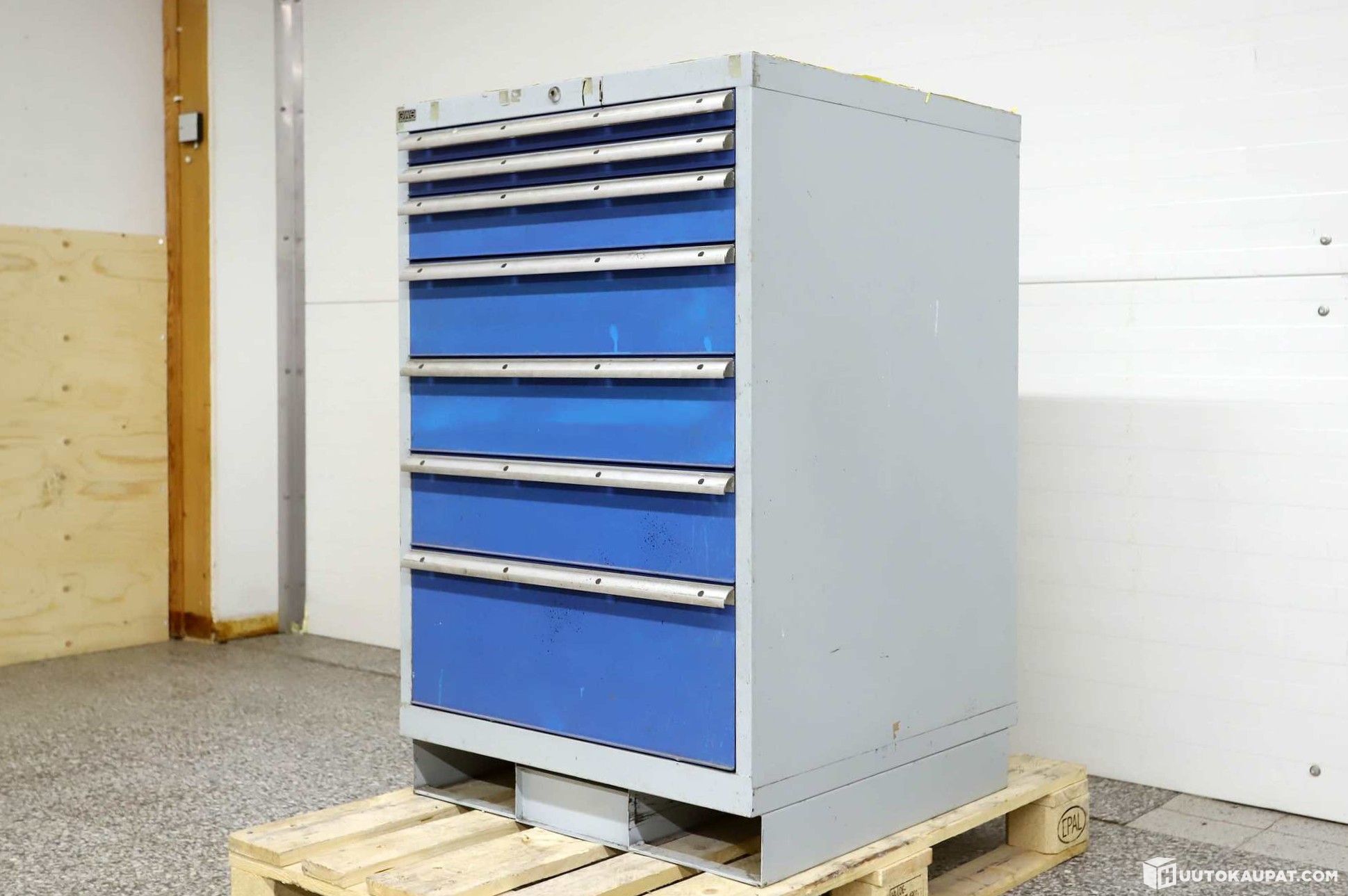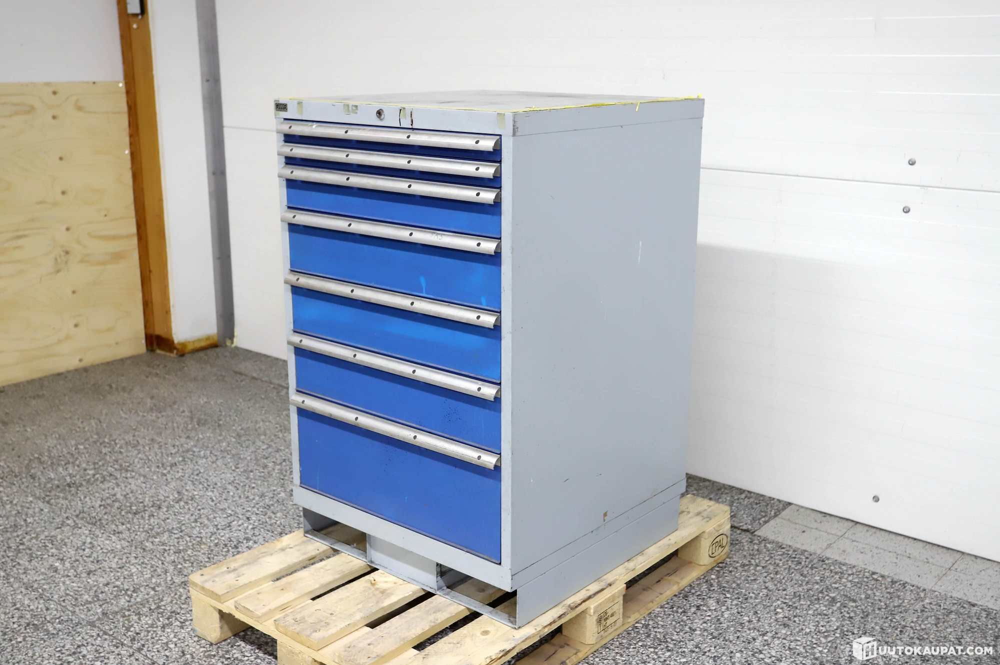 Jalustassa paikat trukin piikeille helppoa liikuttelua varten. Ideaalinen vetolaatikosto varastolle, autotalliin.