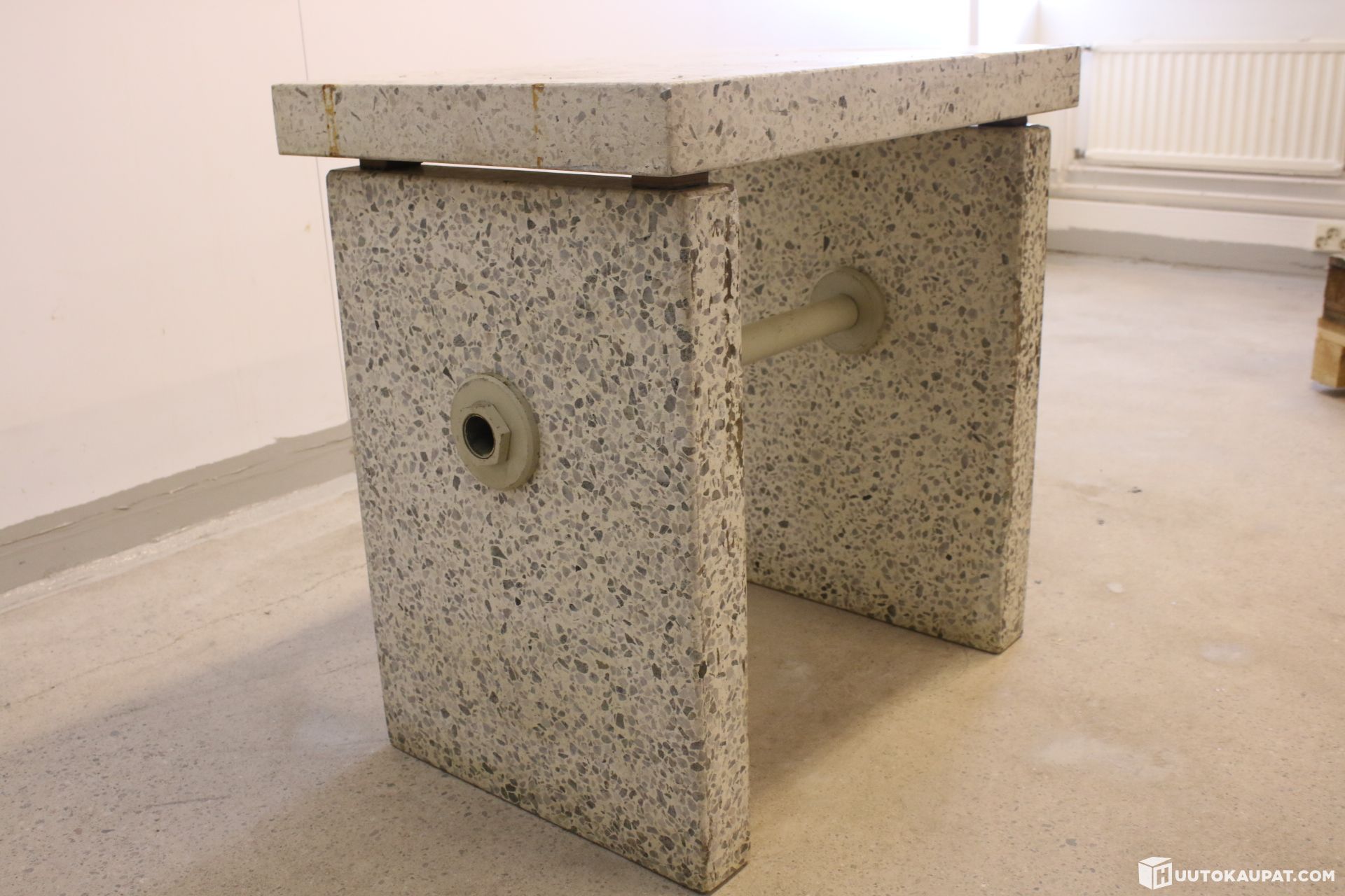 Upea mosaiikkibetonista valmistettu vaakapöytä.