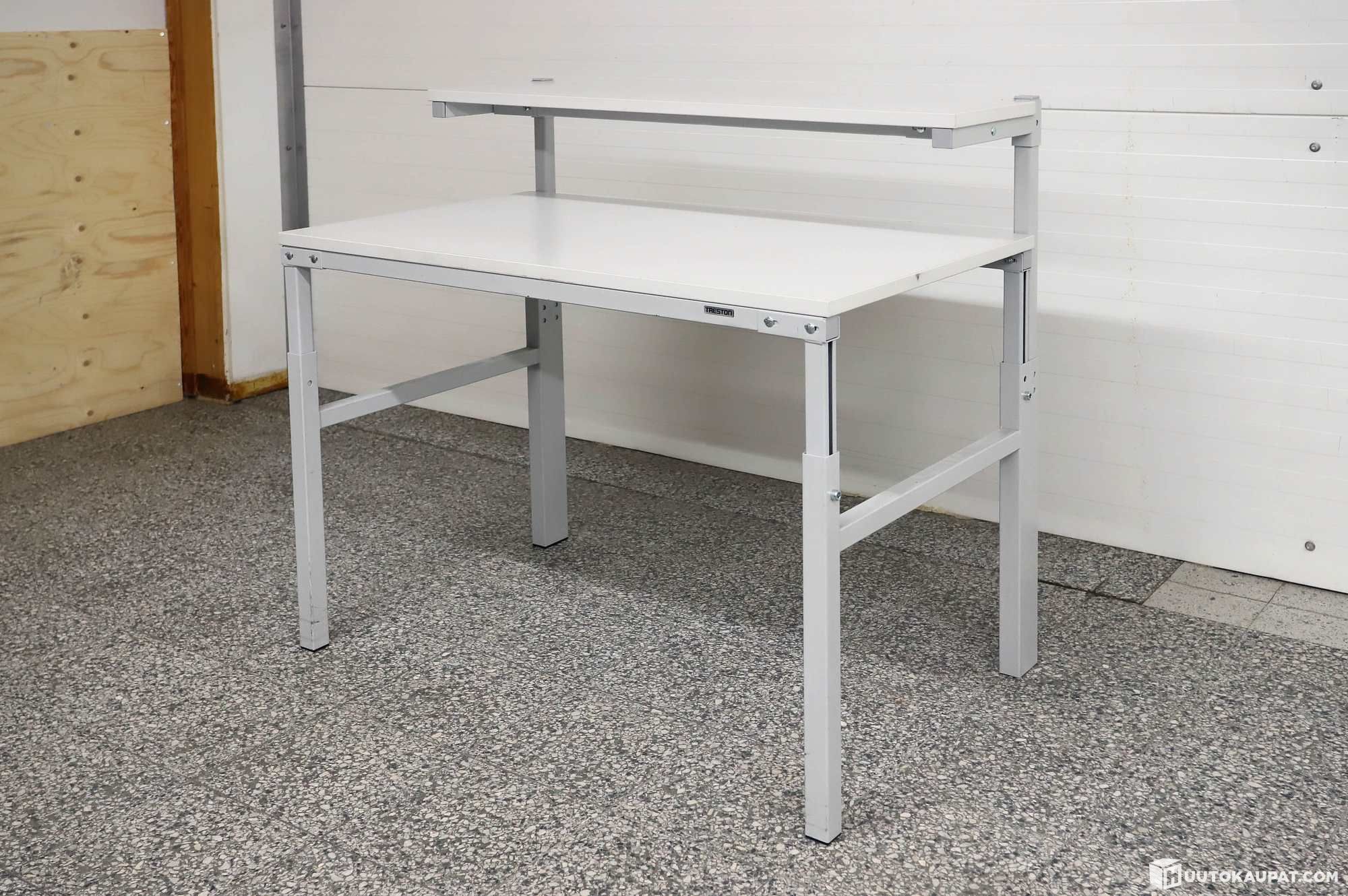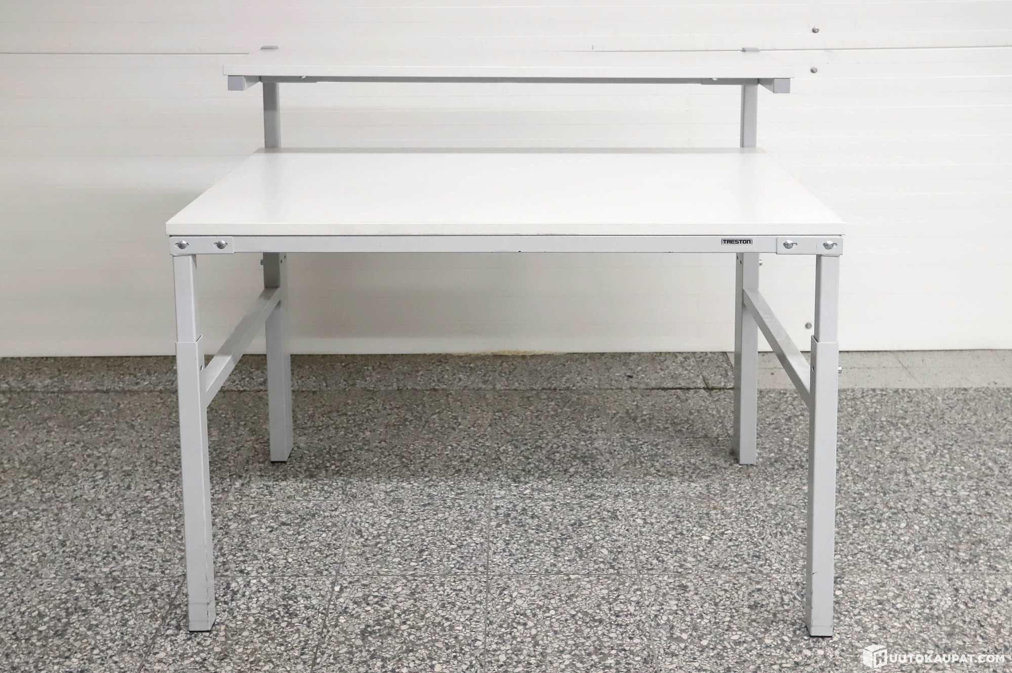 Tukeva Treston-työpöytä ylähyllyllä.