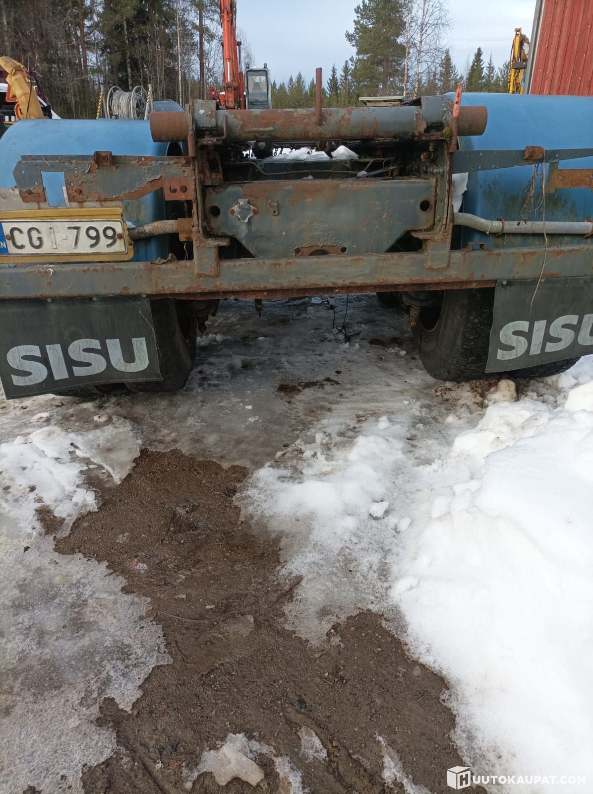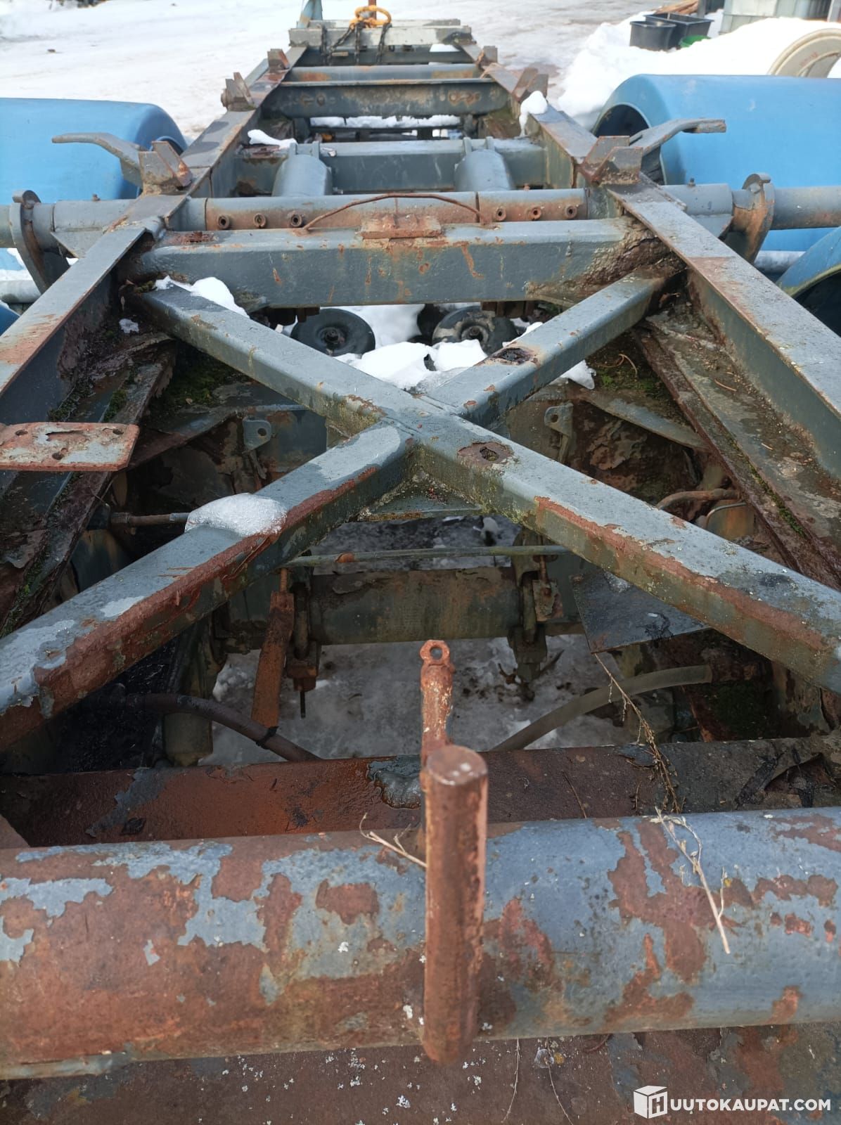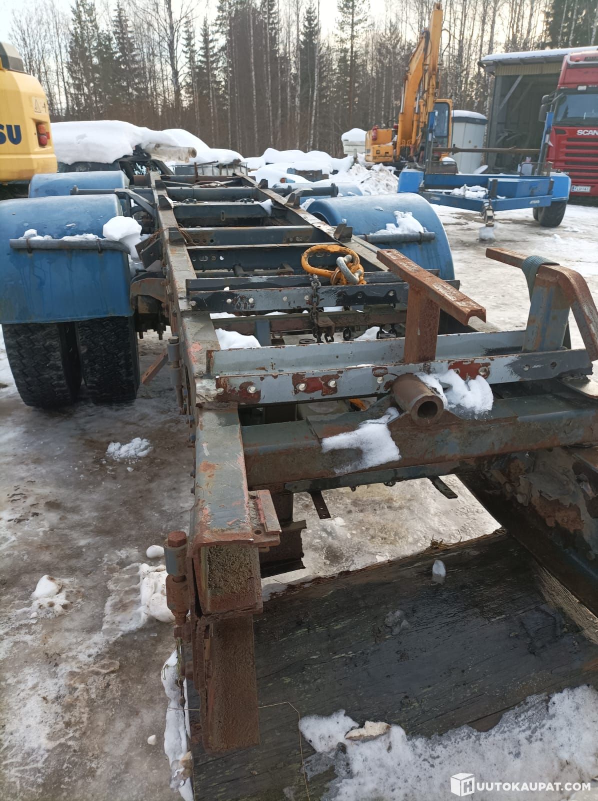 Työkoneautosta leikattu nousutelirunko kärryaihioksi.
