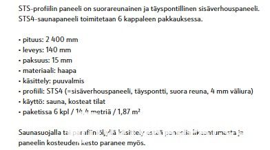 24 pkt erä Haapapaneelia A-laatu. Normaali hinta 185,14 e/pkt.