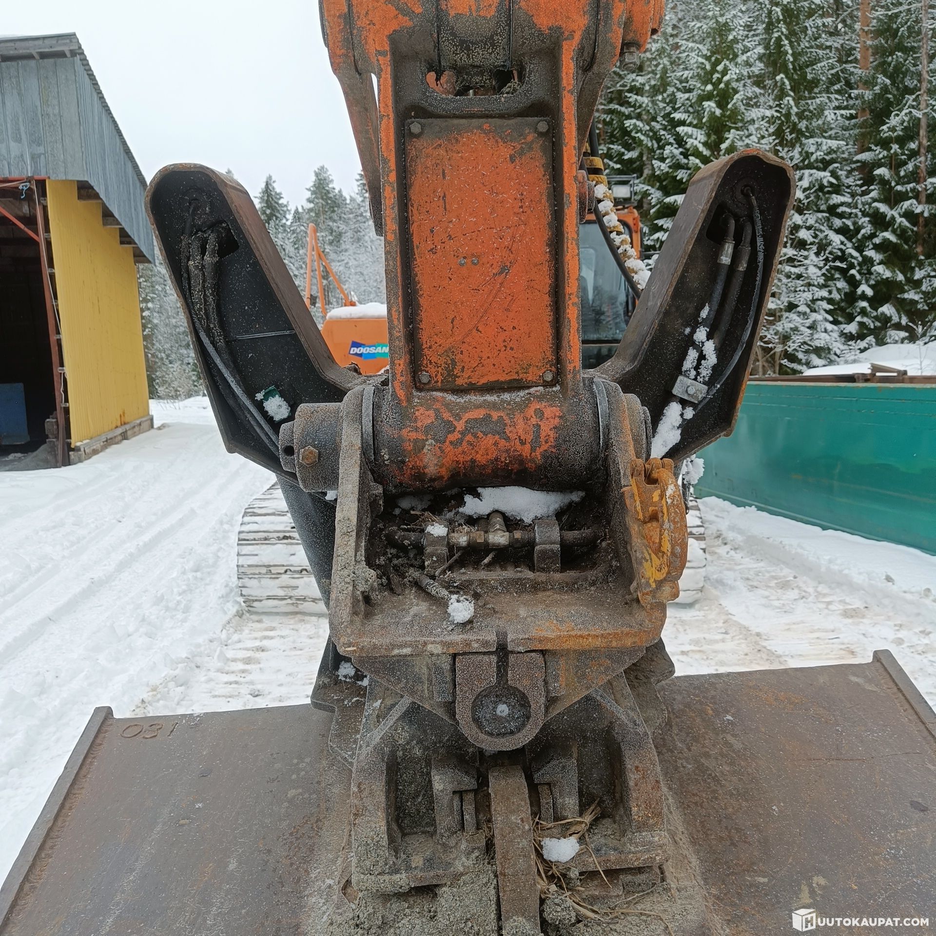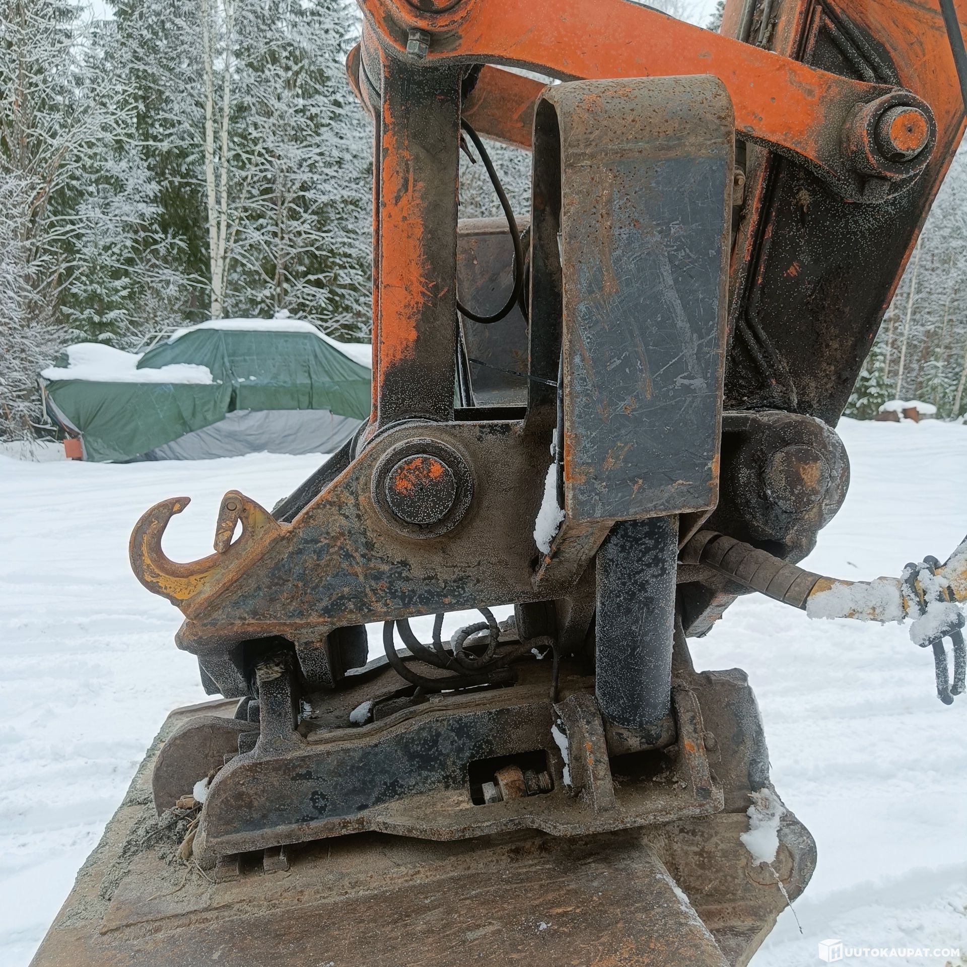 Myydään kuvien marttiinin kallistuva liitin. Ollut doosan 225 koneessa. Tappikiinnitys, 80mm tapit.