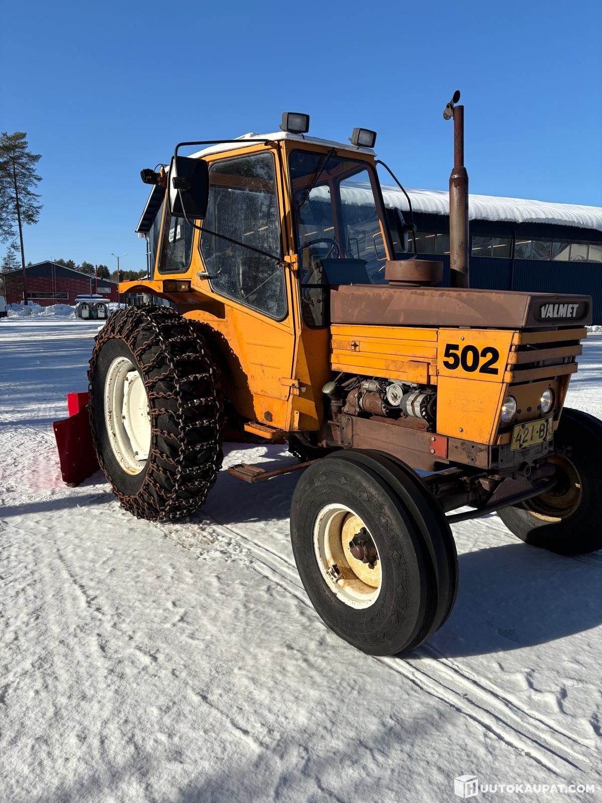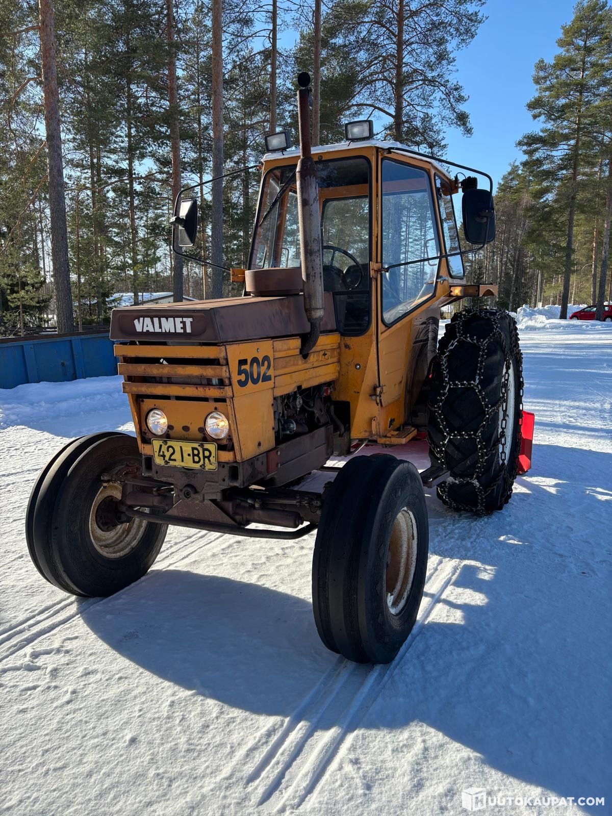 Hyvässä kunnossa oleva 502 valmetti. Uutta penkki, murros ja työntötanko. Valot ja jarrut laitettu. Hyvät ketjut ja linko. Traktori on Alv vähennyskelpoinen. Kuljetus järjestyy sovittaessa lisähinnasta.