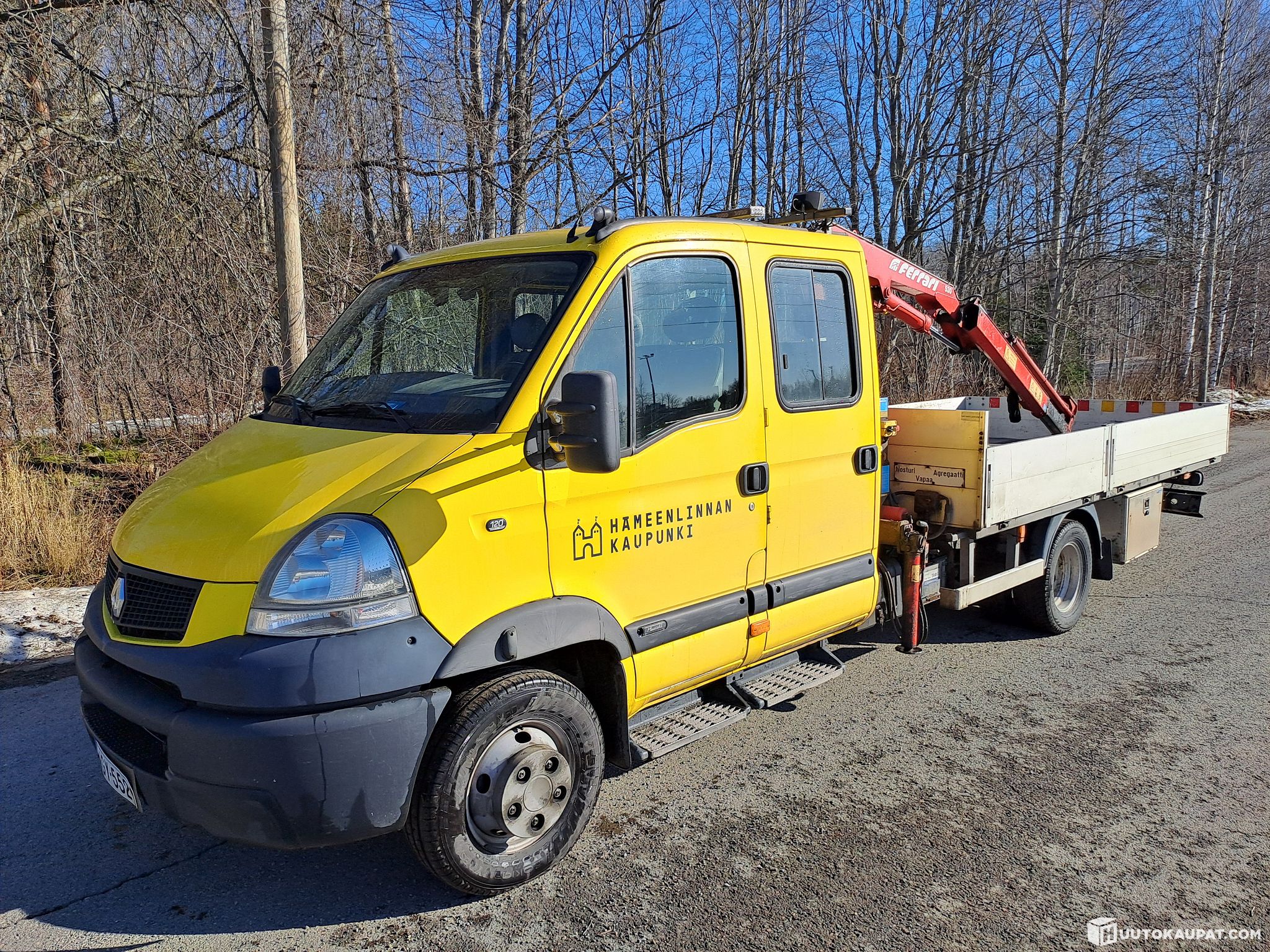 Myydään käytöstä poistuva Renault Mascott Avolavakuorma-auto Ferrari 530 - nosturilla. Ajokuntoinen auto suoraan työkäytöstä, katsastettu ja huollettu 9/25, sen jälkeen ollut hyvin vähällä käytöllä. Akut uusittu hiljattain. Nosturi vuosikatsastettu viimeksi 12/24. Nosturi on nosturitarkastajan ja kuljettajien hyväksi kehuma, ja siihen on myös radio-ohjain. Auto käy ja käynnistyy hyvin, kulkee normaalisti, mutta kuluttaa jäähdytinnestettä, ja ajoittain savuttaa valkoista normaalia enemmän. Epäilyksenä sylinterikansi- tai kannentiivistevika. Auto 7-paikkainen. Hydraulinen agrekaatti purettu pois, joten sitä ei tule mukana. Myydään korjattavaksi, siinä kunnossa kuin auto on kaupantekohetkellä, ja vain kuvassa alla olevalla rengastuksella.