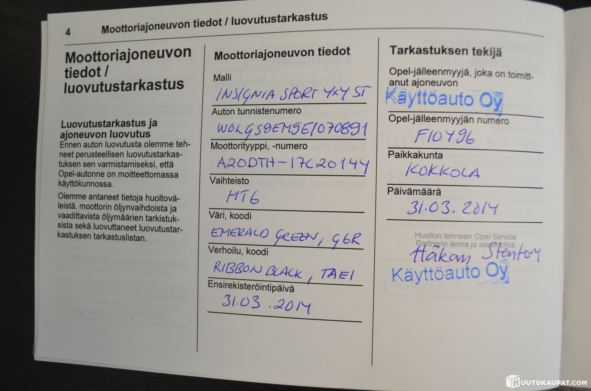Auto ei ole ollut toimestamme teknisessä kuntotarkastuksessa eikä kaikkien varusteiden