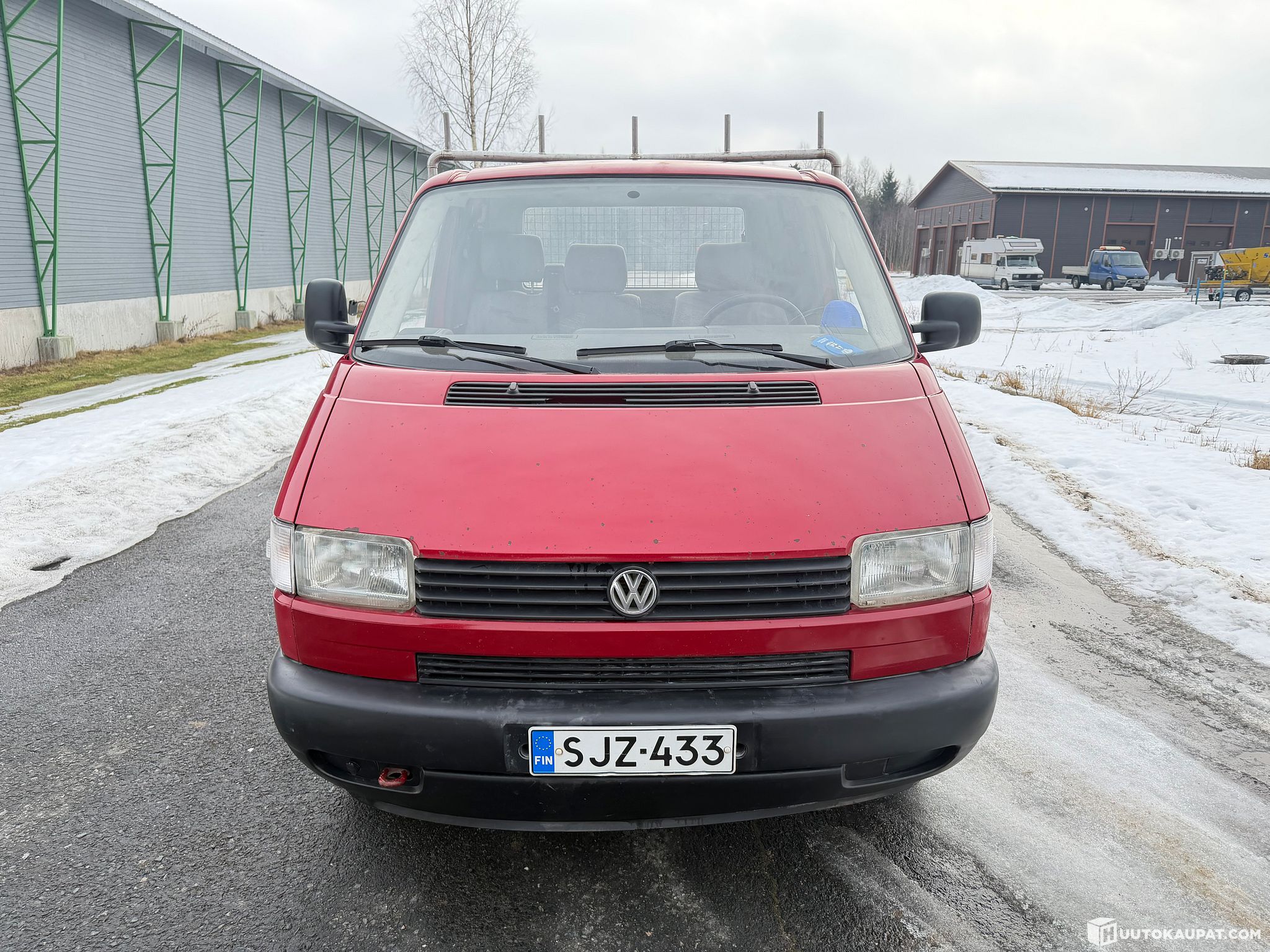 Transporter T4 flatbed -lavalla. Käytännöllinen työauto, jonka lavalle mahtuu helposti myös isot levyt ja rakennustarvikkeet, joten sopii hyvin esimerkiksi rakennus- tai remonttikäyttöön.