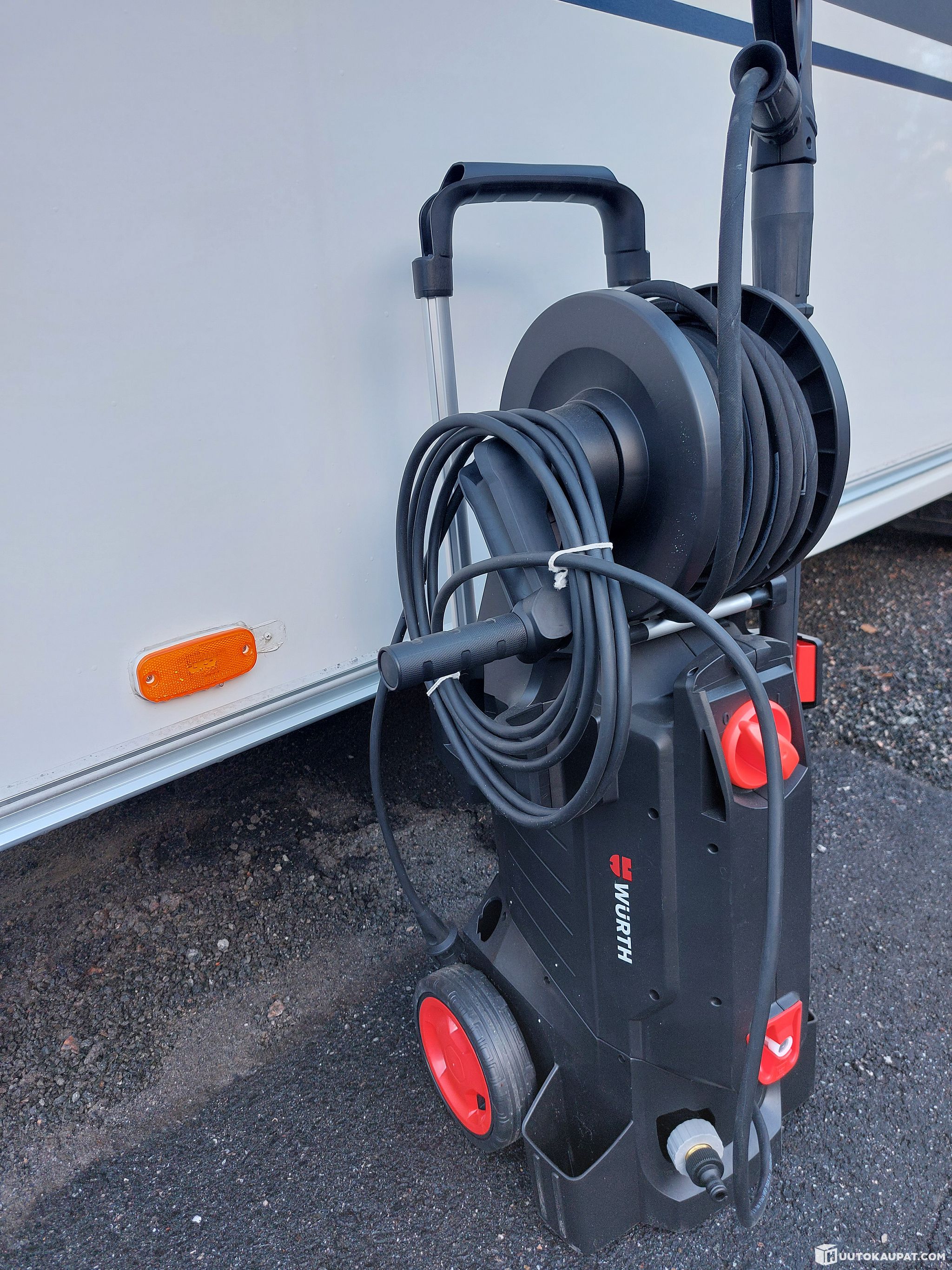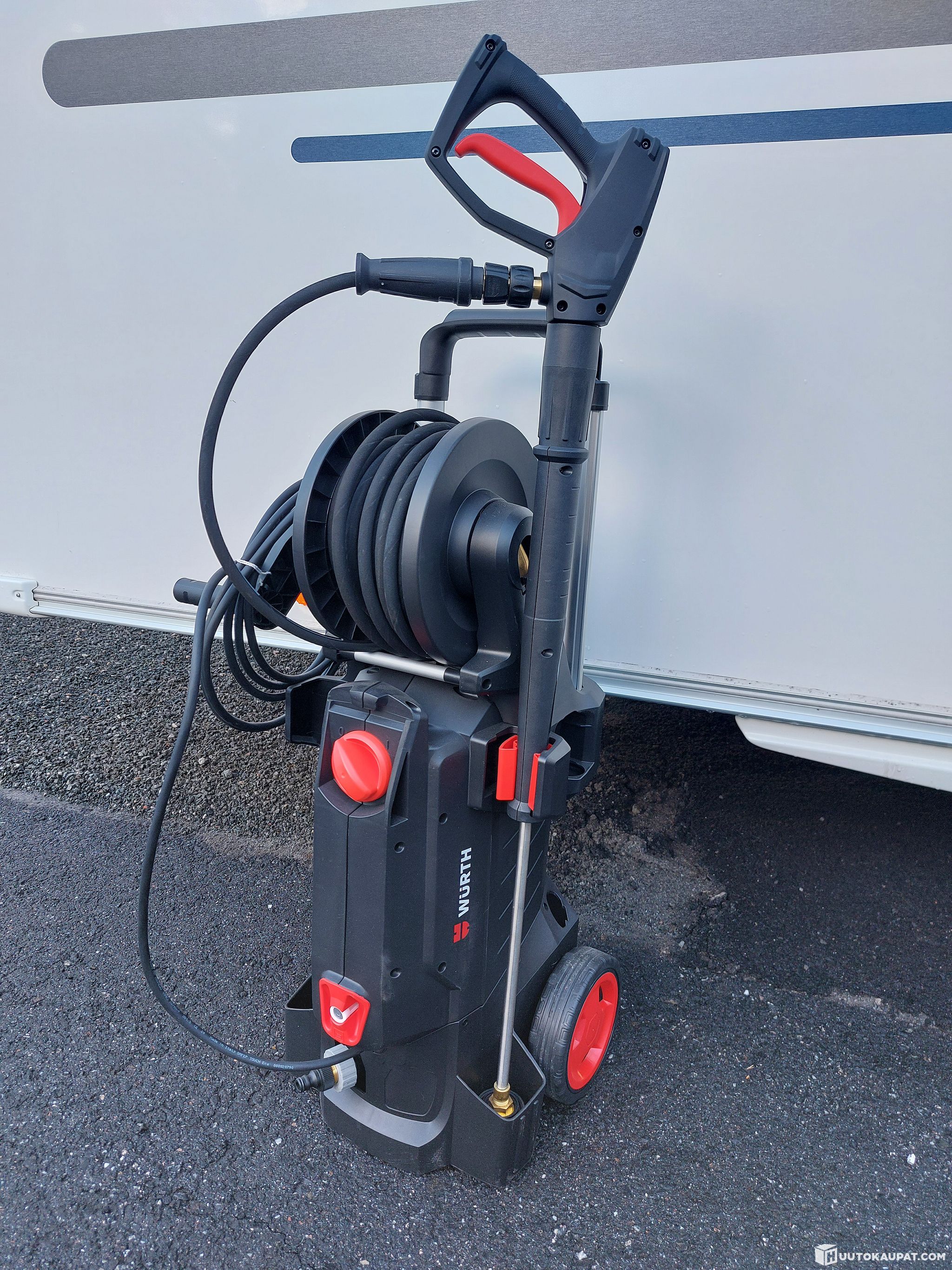 Kätevä integroitu letkukela varmistaa, että letku on aina oikeassa paikassa ja minimoi siten onnettomuusriskin. Ergonominen käsikäyttöinen suihkupistooli pienemmällä pito- ja liipaisuvoimalla takaa mukavan työskentelyn ilman rasitusta.
