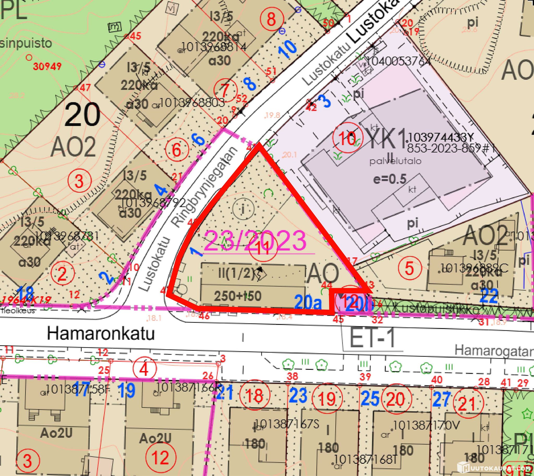 Turun kaupunki myy tai vuokraa omakotitontin Turun kaupungin Räntämäen kaupunginosassa, kiinteistötunnus 853-91-21-11, osoite Lustokatu 1, 20380 Turku. Tontin koko on 1389 m2 ja rakennusoikeus 250+50 k-m2. Tontti sijaitsee Lustokadun ja Hamaronkadun risteyksessä Linnasmäen opiston läheisyydessä. Tontilta on matkaa lähimpään kouluun (Turun Lyseon koulu, Pallivahan yksikkö, alakoulu) 1,7 km ja päiväkotiin 500 m. Keskustaan on matkaa noin neljä kilometriä.