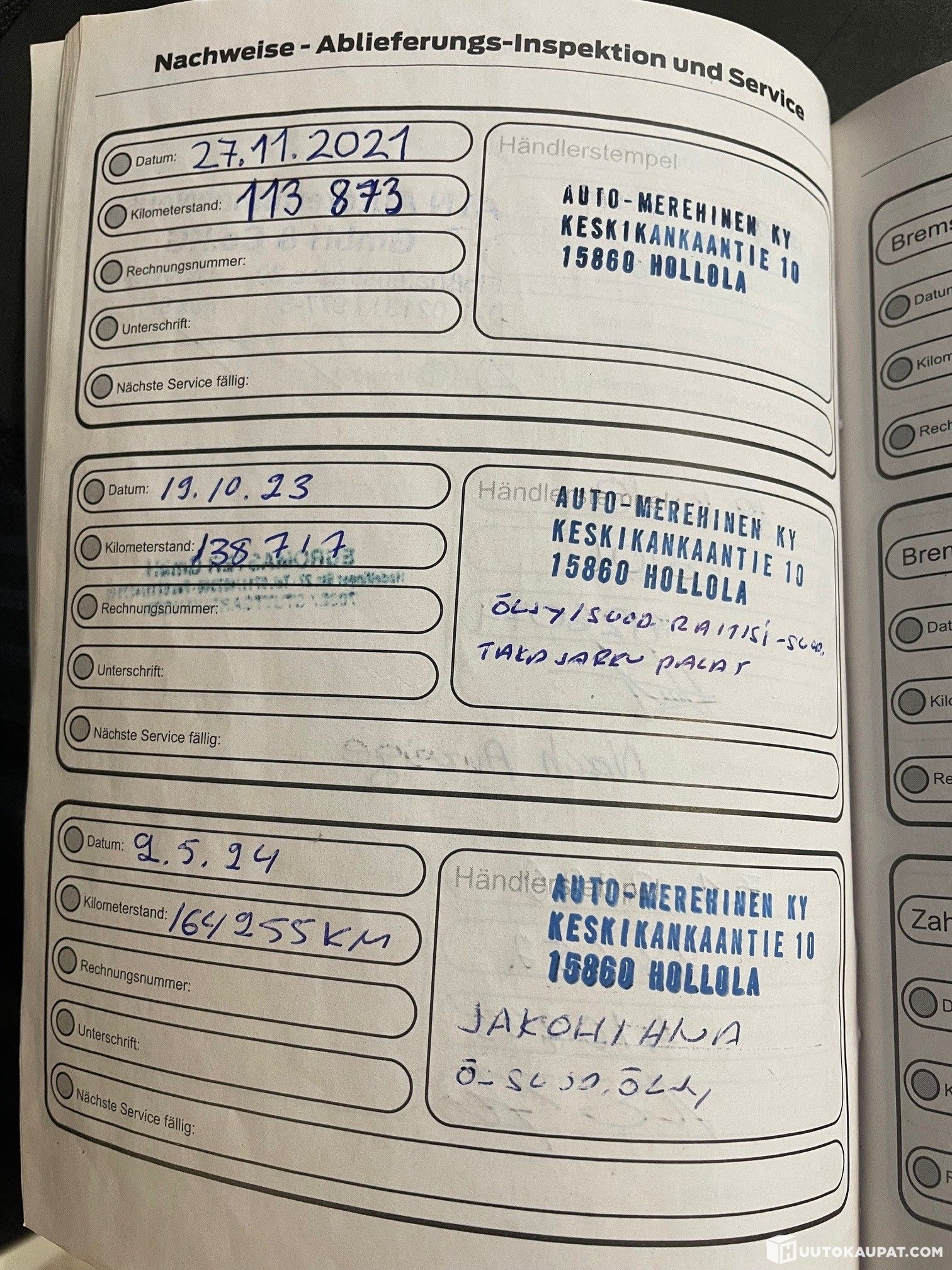 Viimeisin huolto tehty: 2.5.2024/164255km