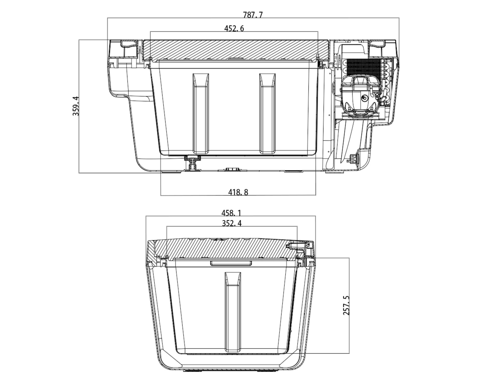 Kompressorikäyttöinen 12/24/230V 35 litran jääkaappipakastin Teslan Y-mallin Sub Trunkiin. Erittäin tehokas, jäähdyttää jopa -20 °C:een vain hyvin pienellä virrankulutuksella ulkolämpötilasta riippumatta. Etäohjattavissa helppokäyttöisen mobiilisovelluksen kautta.