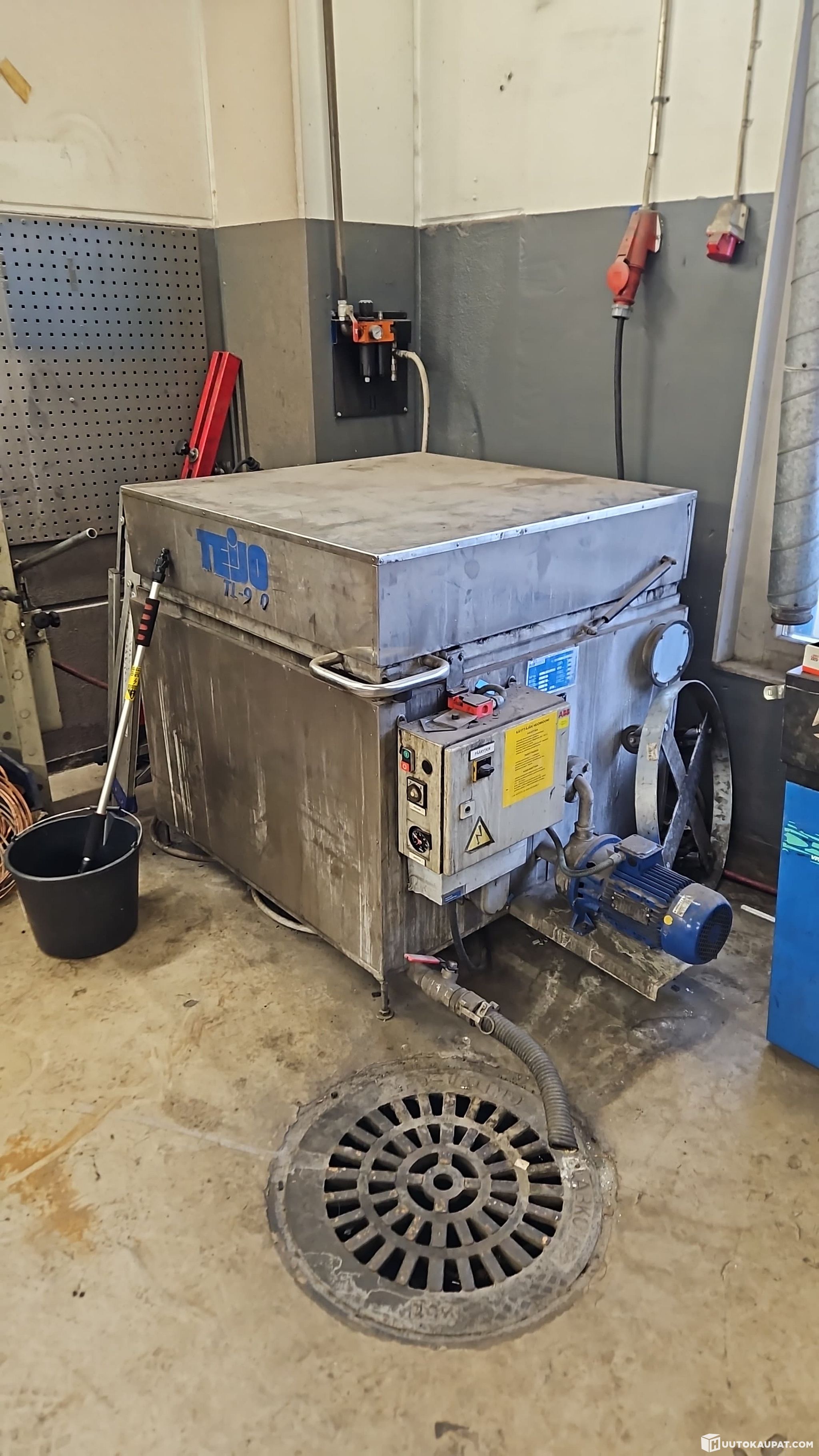 Osienpesukone on ollut autokorjaamon käytössä, jäänyt kuitenkin käyttämättömäksi.