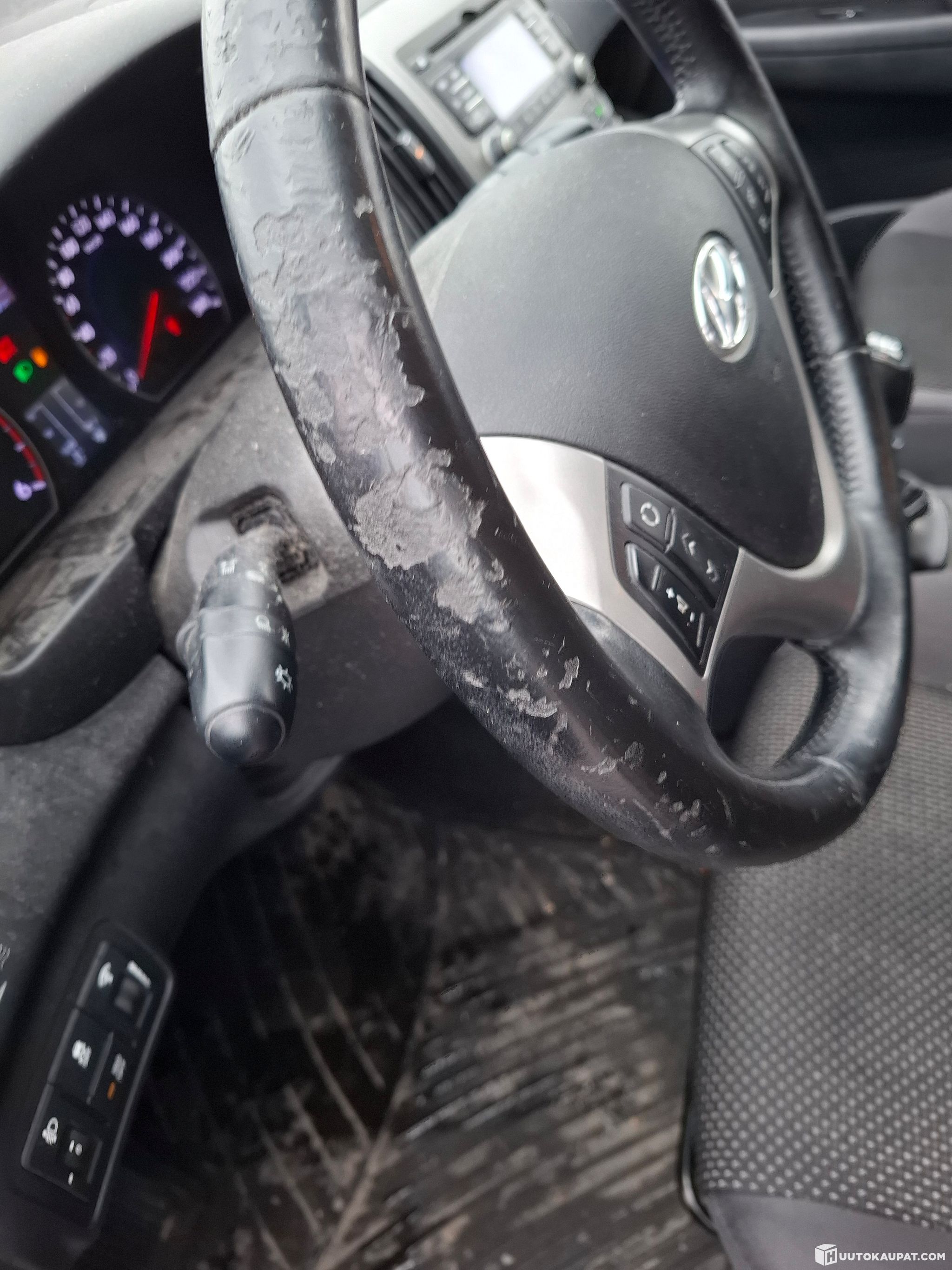 Kyllä, ratti kulunut. Kuskin penkki kulunut