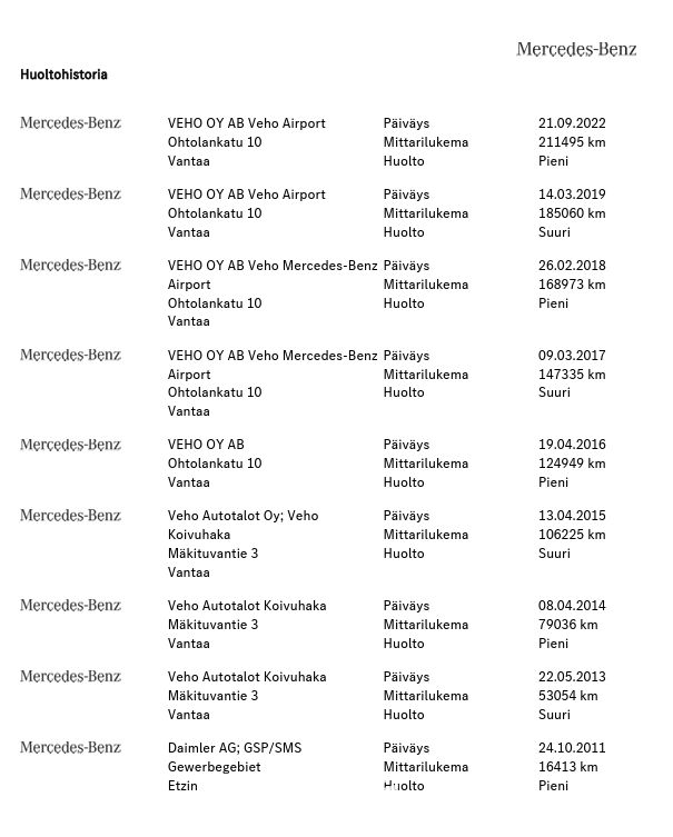 12.3.2026 Katsastettu hyväksytysti, mutta tuulilasin halkeamasta tuli korjauskehotus.