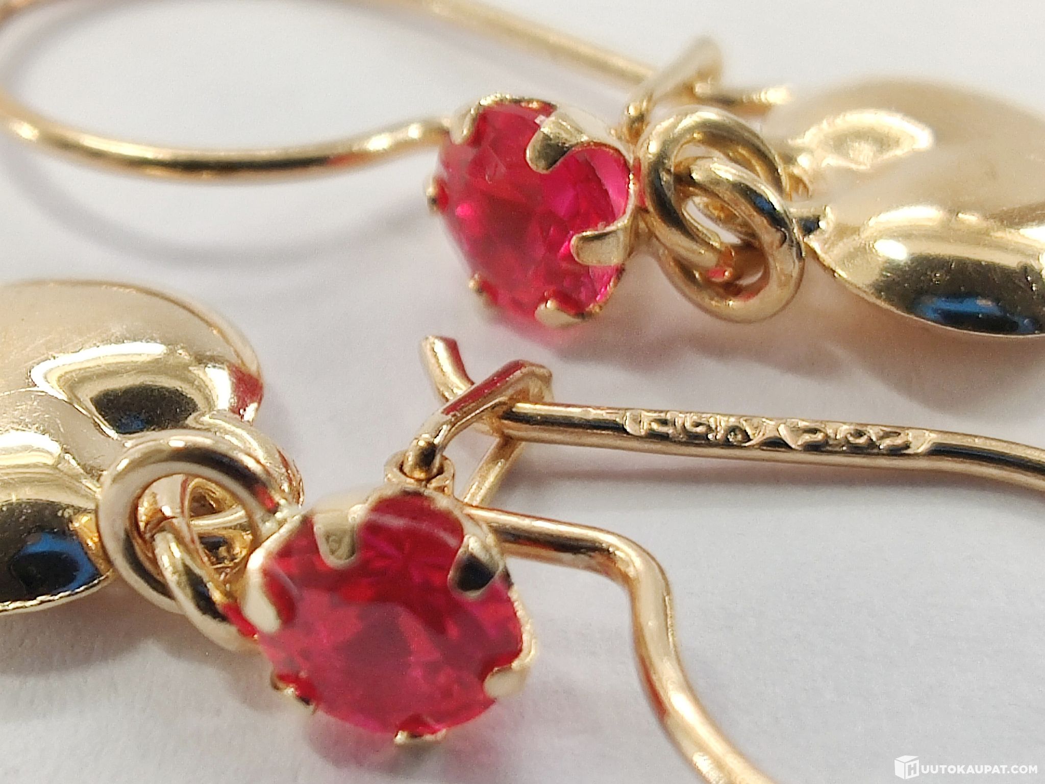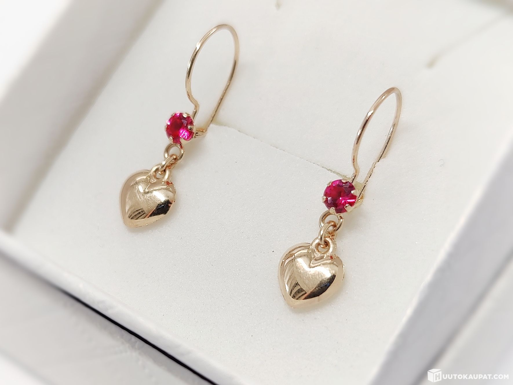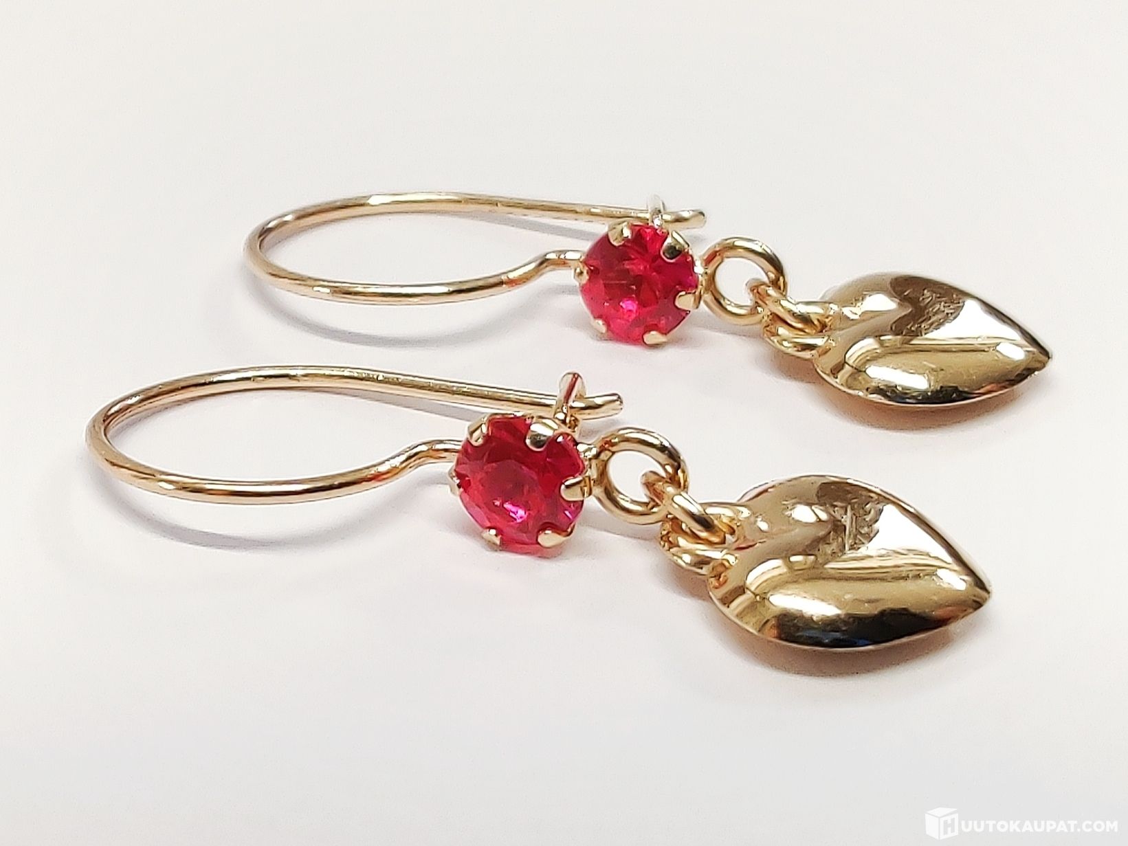 Kauniit sydämenmuotoiset rubiinikorvakorut 585 14k kultaa.