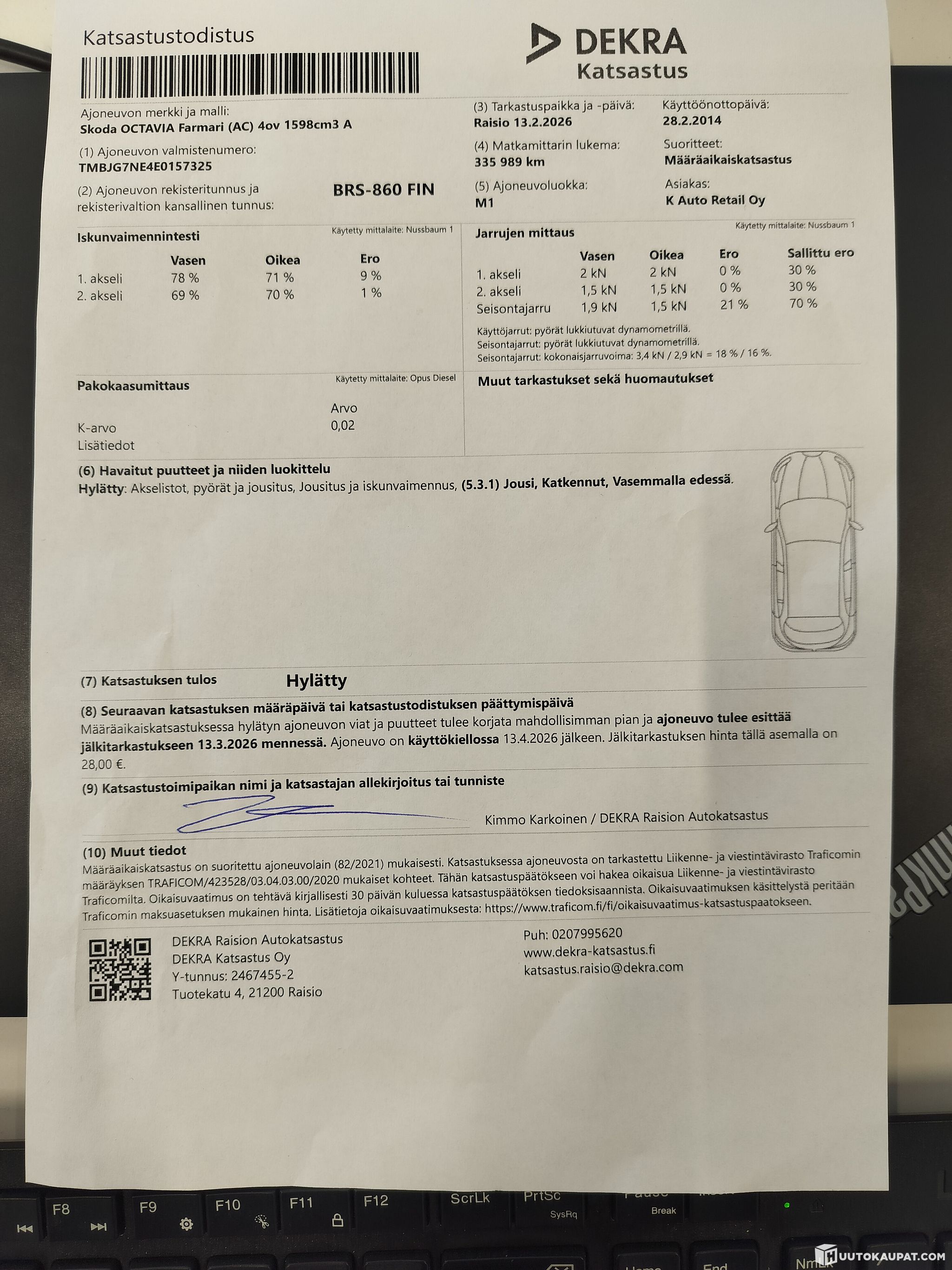 Tämän kohteen myyjä on Huutokaupat.com. K-Auto Oy antaa Huutokaupat.comin puolesta kohteesta lisätietoja ja vastaa kohteen luovutuksesta. Kohde tulee aina maksaa Huutokaupat.com-sivustolla olevien verkkomaksupainikkeiden kautta tai Huutokaupat.comin laskulla. Jos kohdetta ei makseta Huutokaupat.comille, Huutokaupat.com ei hyväksy mitään vastuuta kaupasta.