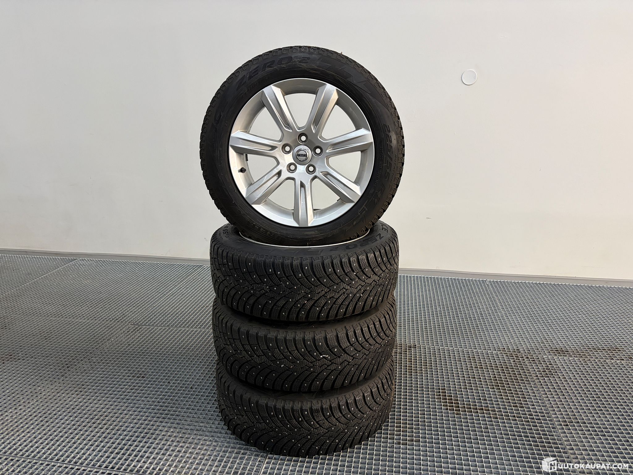 Hyväkuntoiset Volvon alumiinivanteet nastarenkailla!