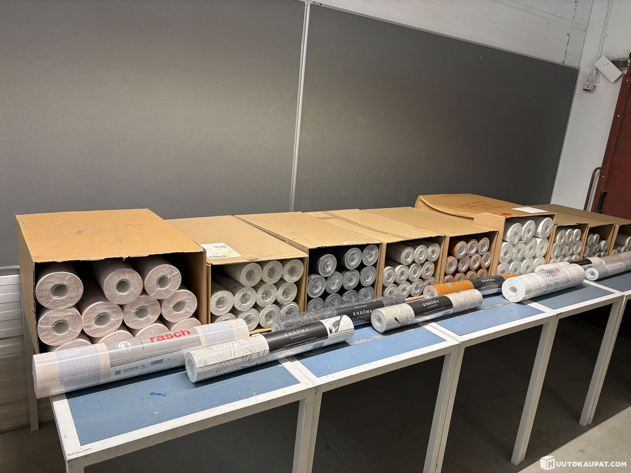 Löytyy myös täysiä lavoja ja myös vaalea sävyisiä tapetteja ja myös vähän lasikuitutapettia.