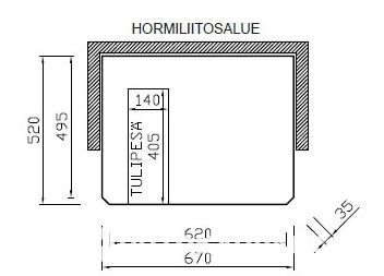 Syvyys: n. 520 mm + pinnoitus