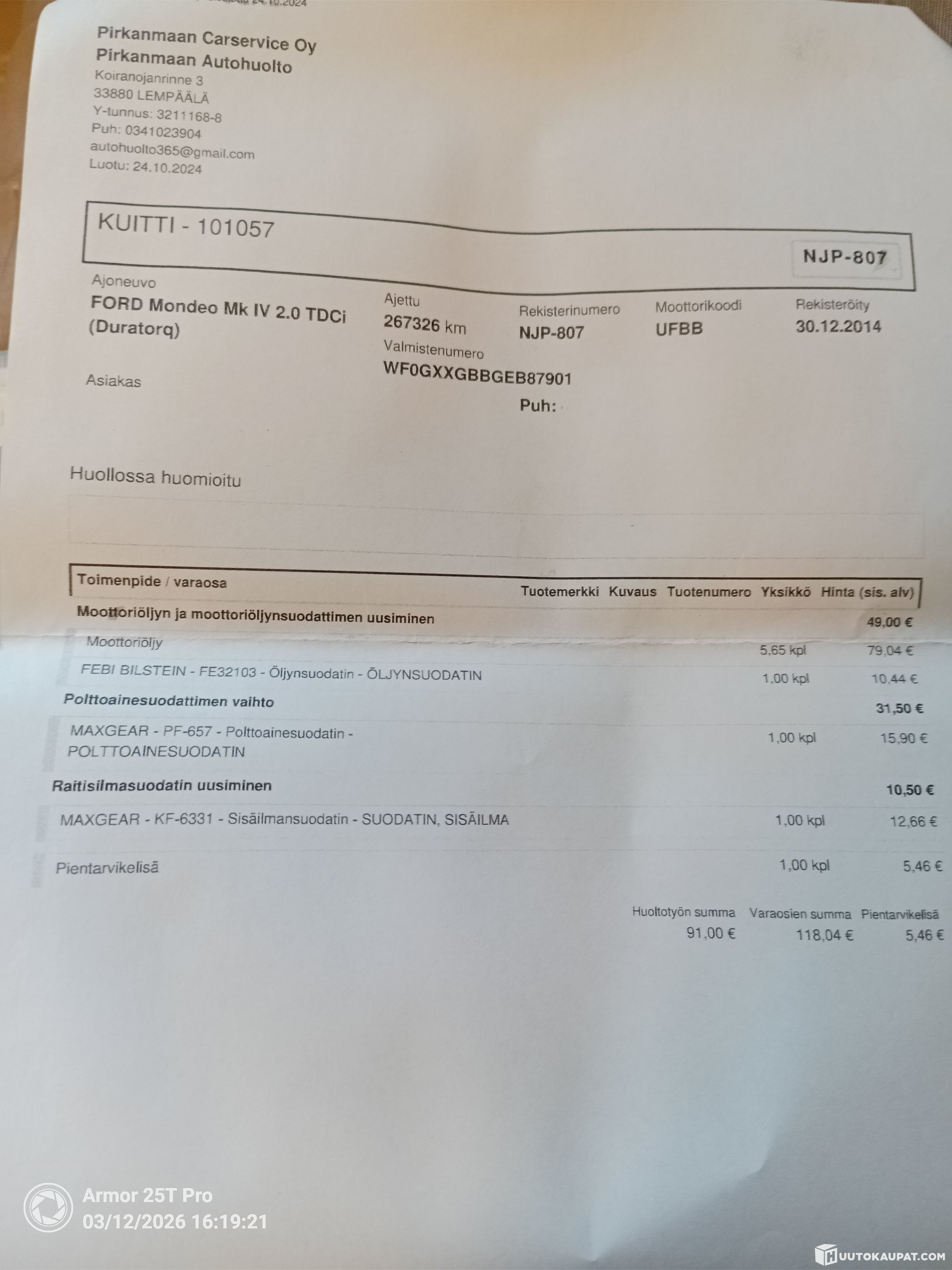 Ajoneuvo noudettava 7vrk kuluessa huutokaupan päättymisestä ellei toisin sovita -Huutokaupat.com.