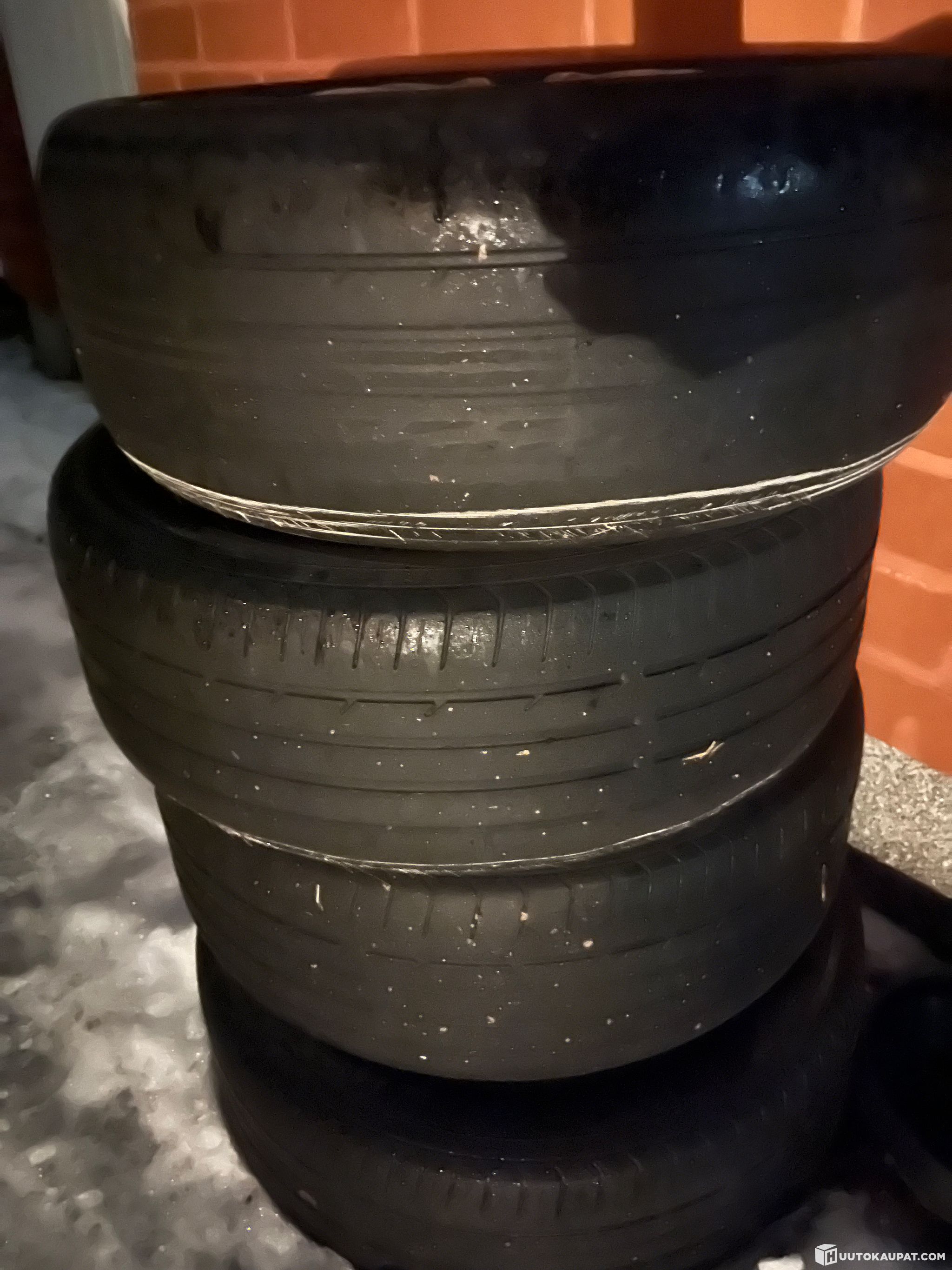Mukaan kahdet renkaat. Kesärenkaat aivan karseat (EI SAMAT MITKÄ KUVISSA 1-5) katso viimeinen kuva, yksi puhkesi eli 1 rengas hieman isompi (vararengas), talvirenkaat sensijaan ovat ihan jees.