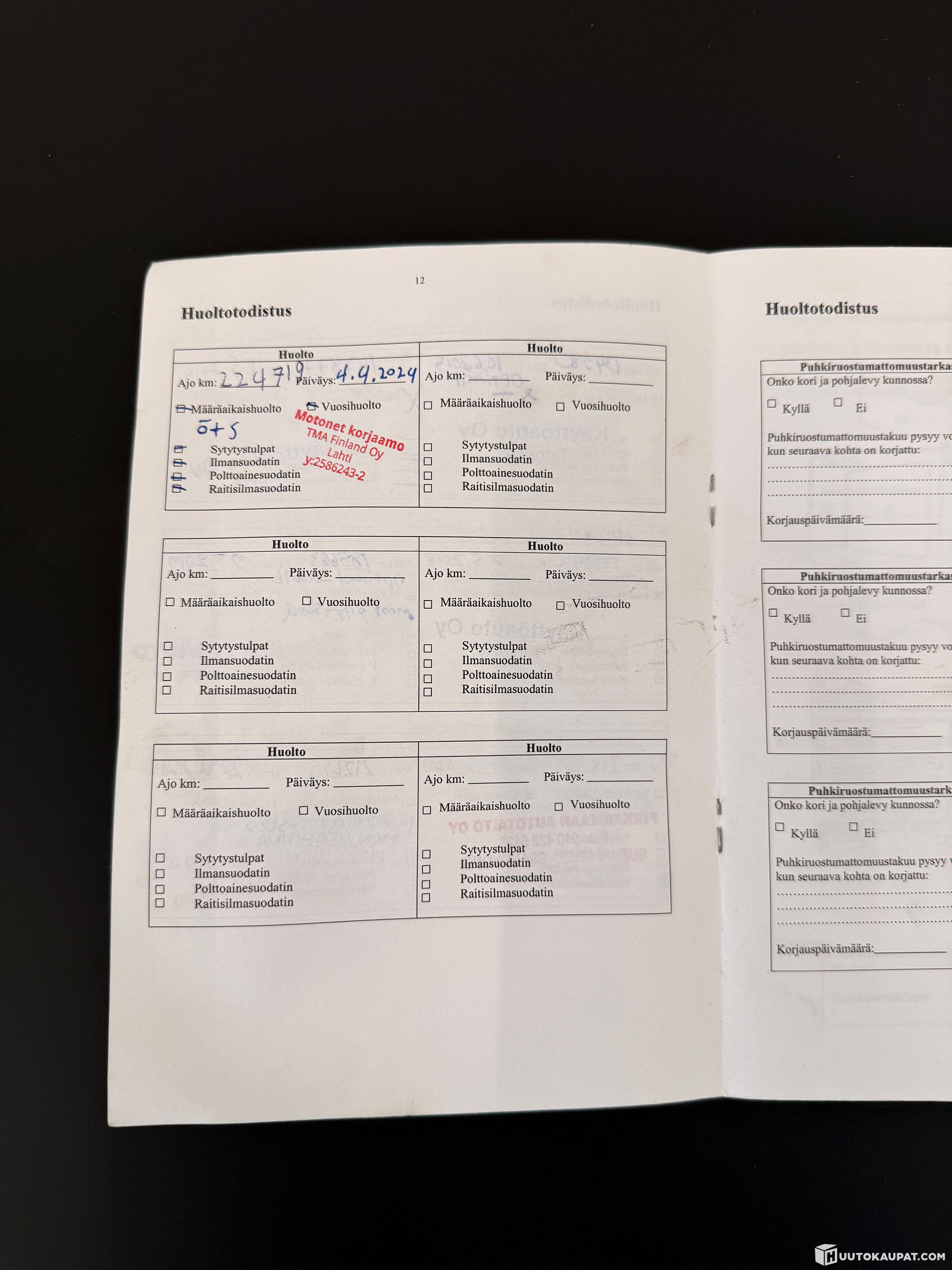 Auto ei ole ollut toimestamme teknisessä kuntotarkastuksessa eikä kaikkien varusteiden