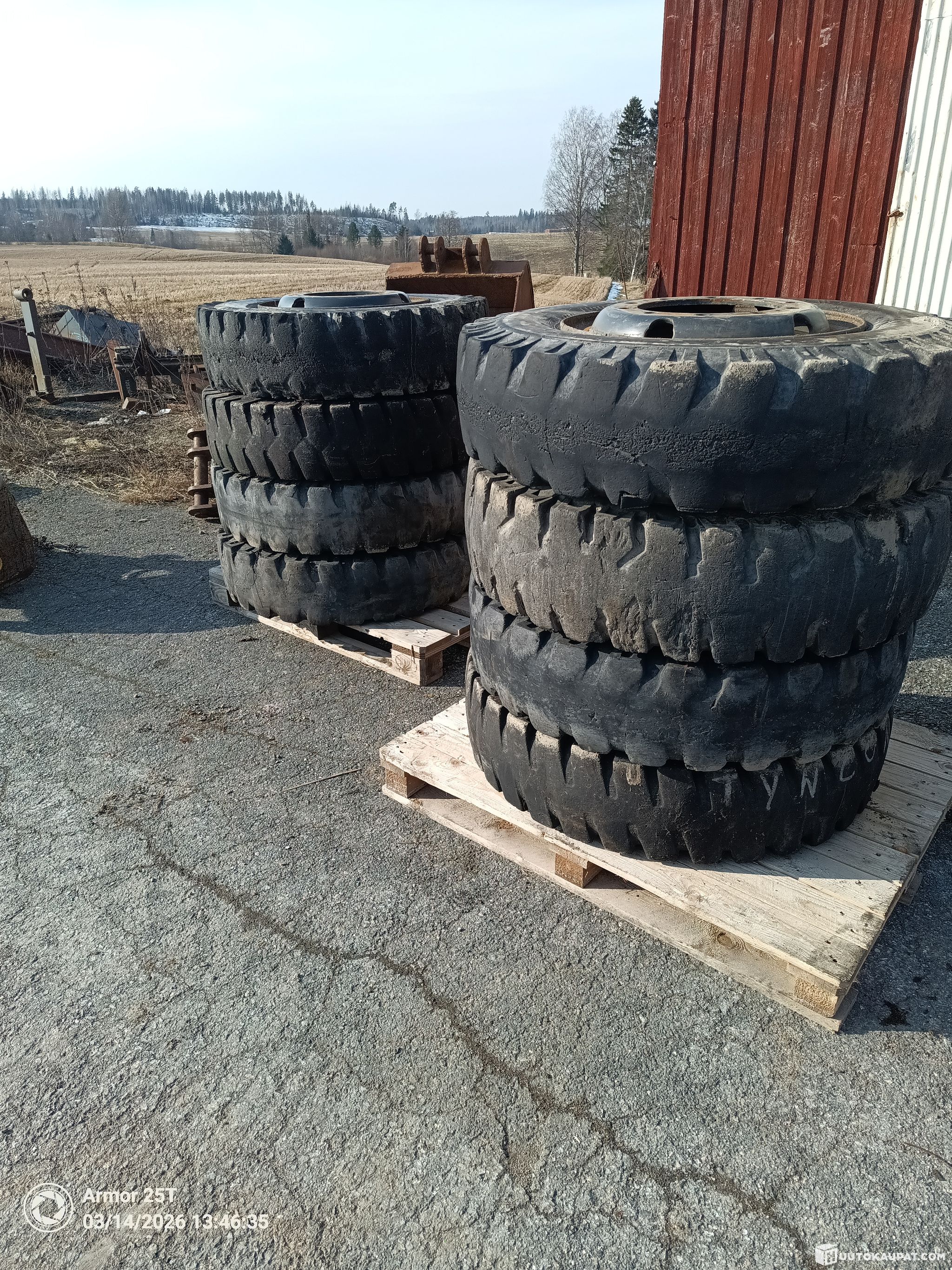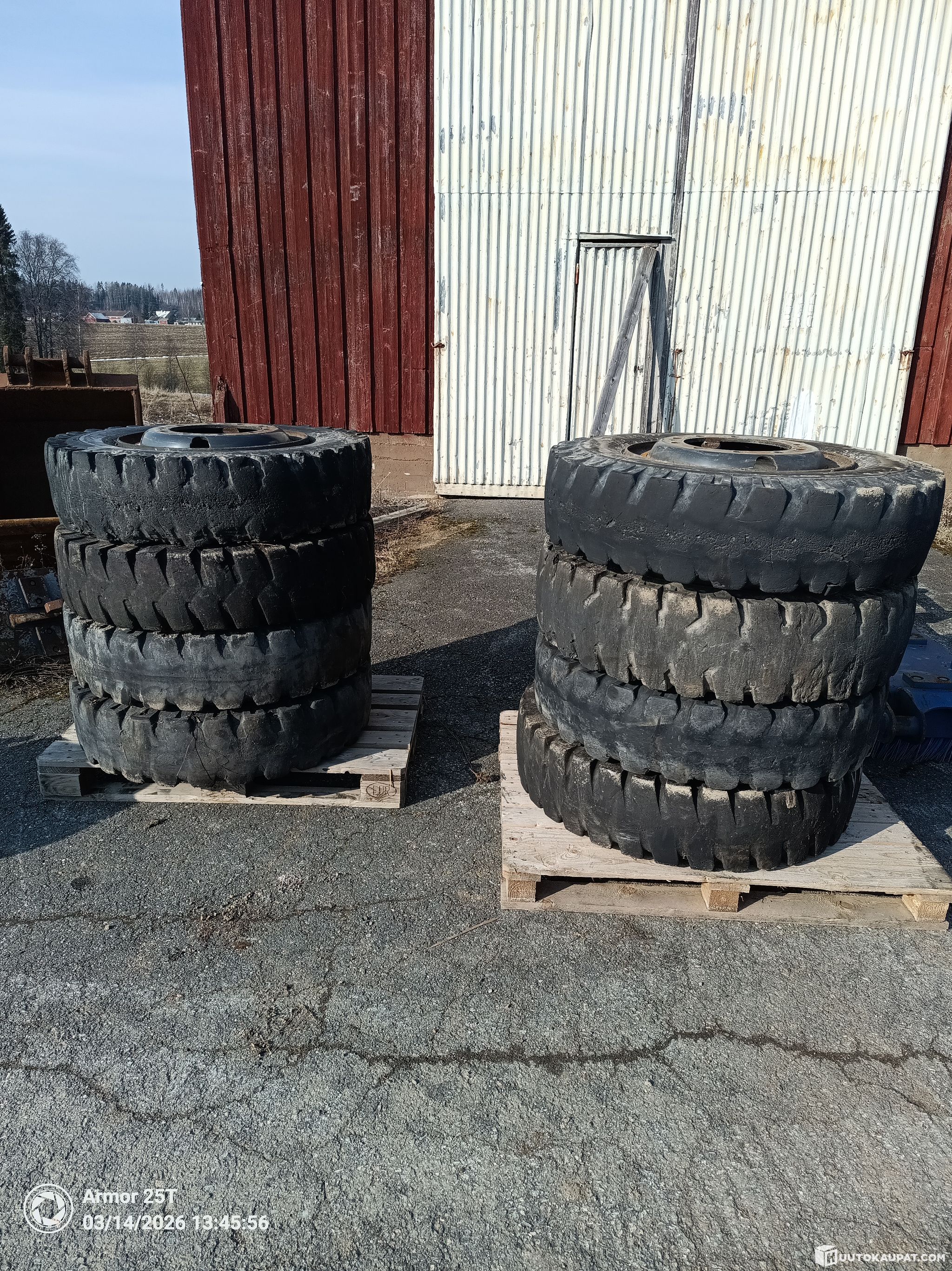 8 kpl Doosanin vanteet+renkaat. Renkaat pääosin Mitas merkkiset. Vanteen väri Doosan harmaa. Renkaat kuluneet. Vanteet hyvä kuntoinen.