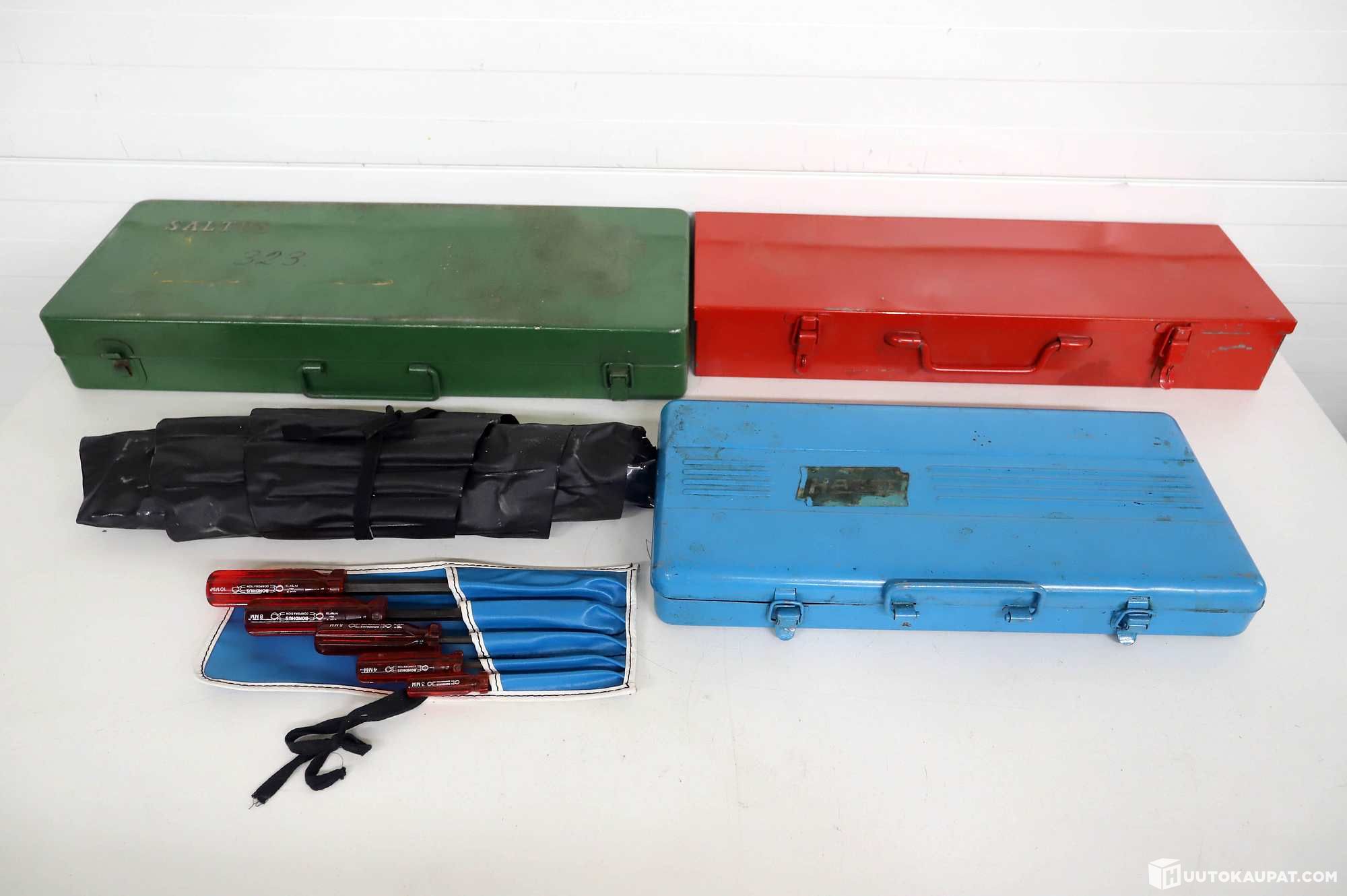 Kaikki pöydän tavarat kuuluvat huutoon.