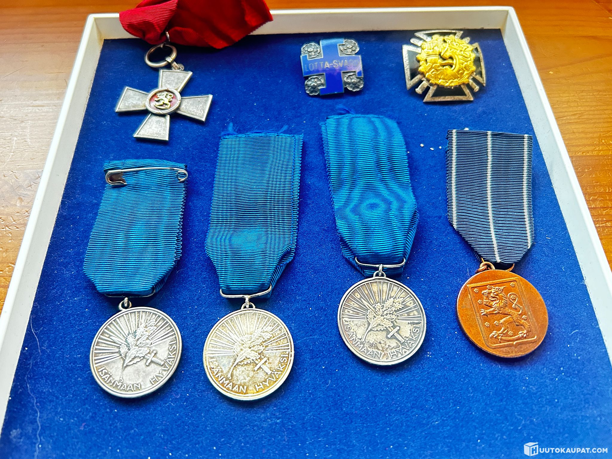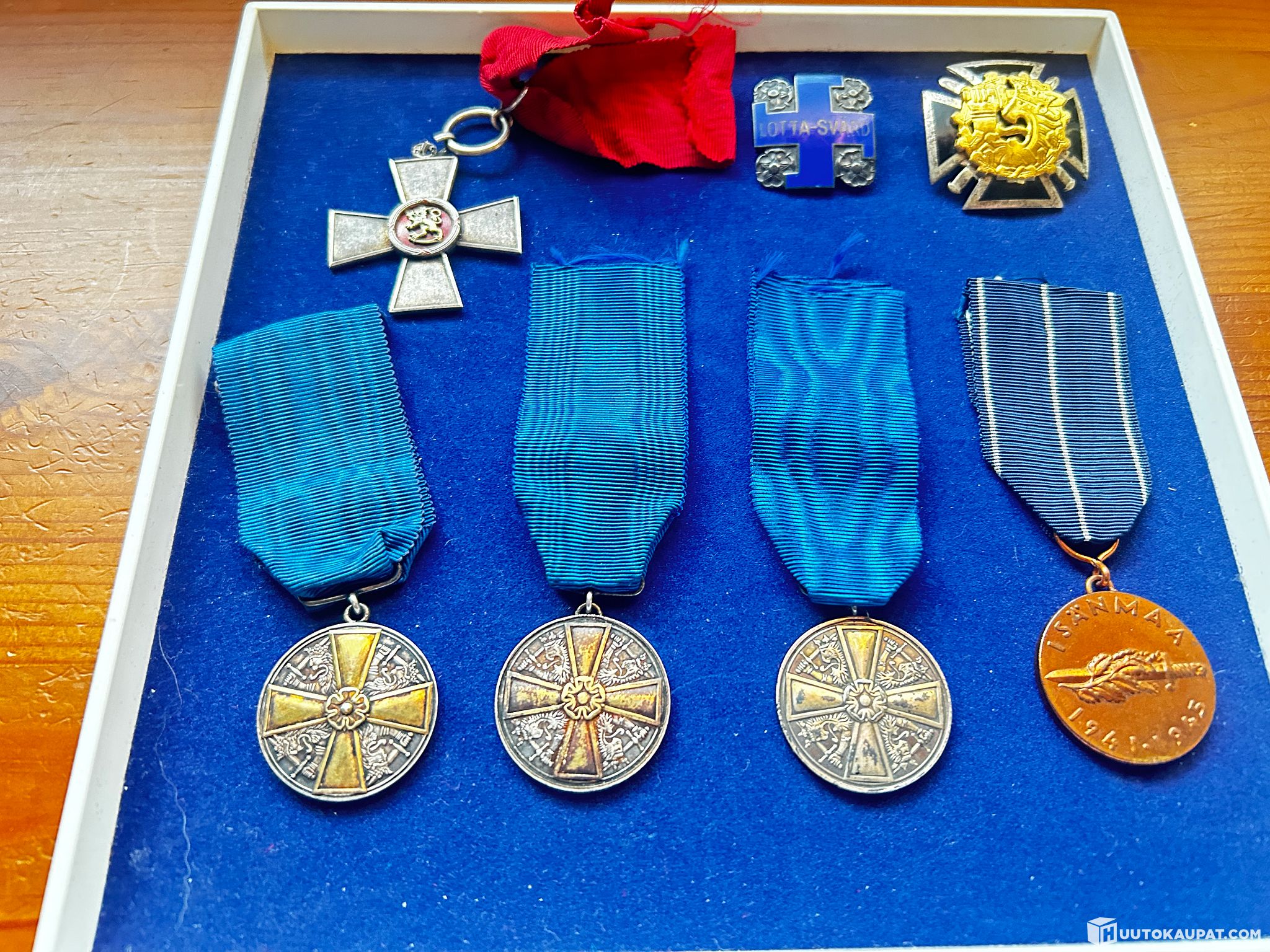Valkoisen Ruusun Ritarikunnan 1 luokan mitali kultaristein 2 kpl hopeaa