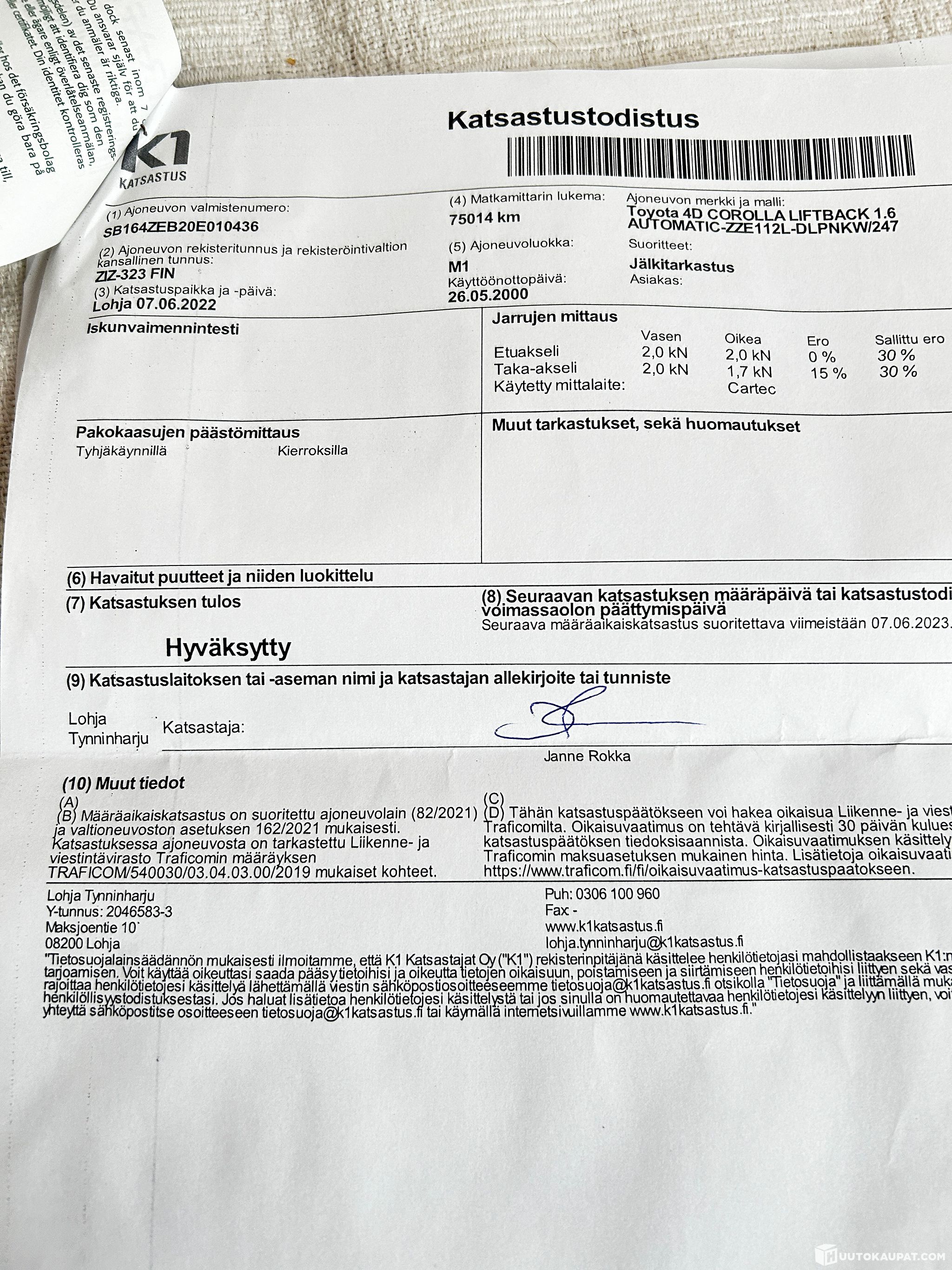 Auto ei ole katsasttu mut uskon että menee läpi