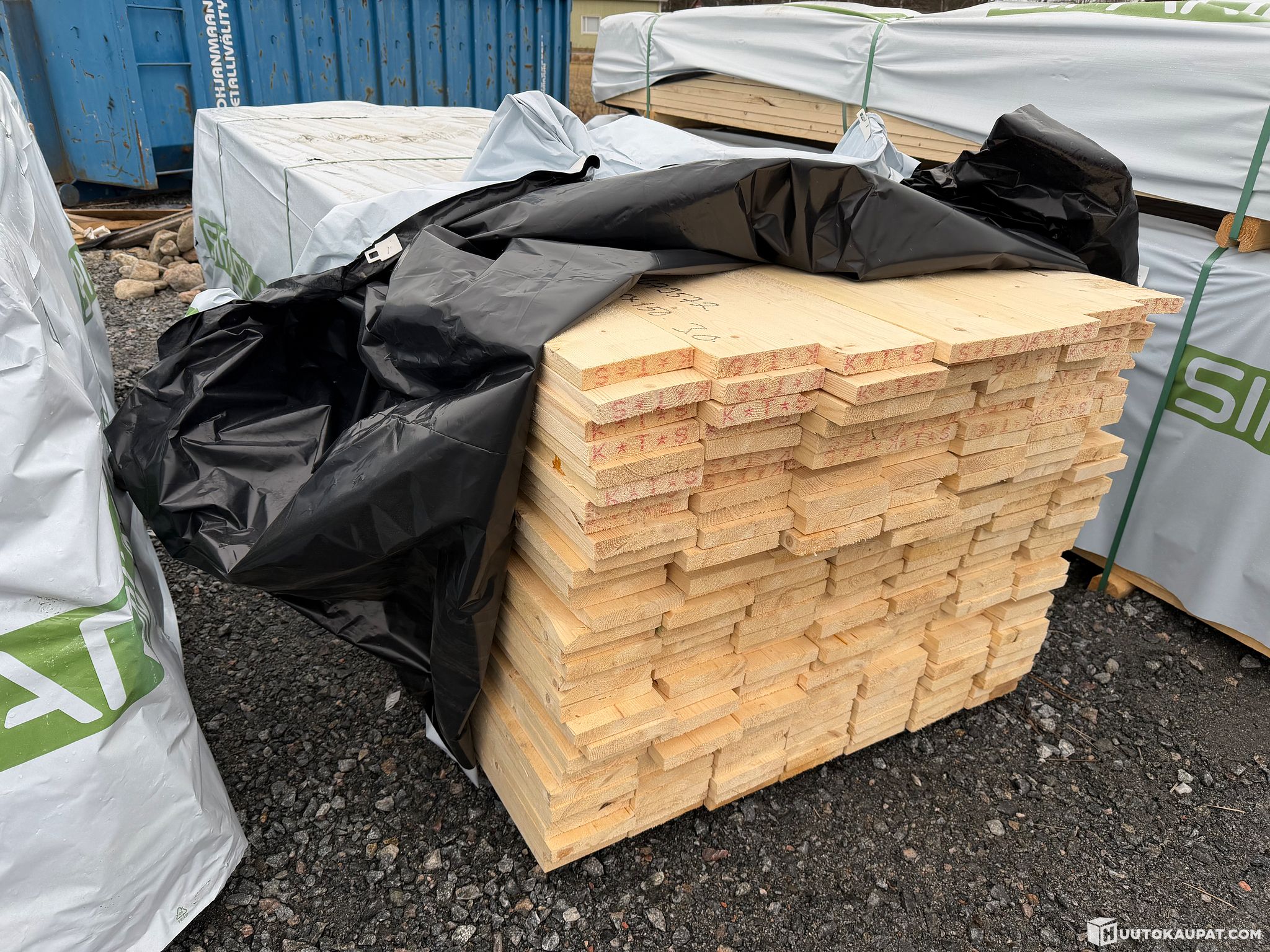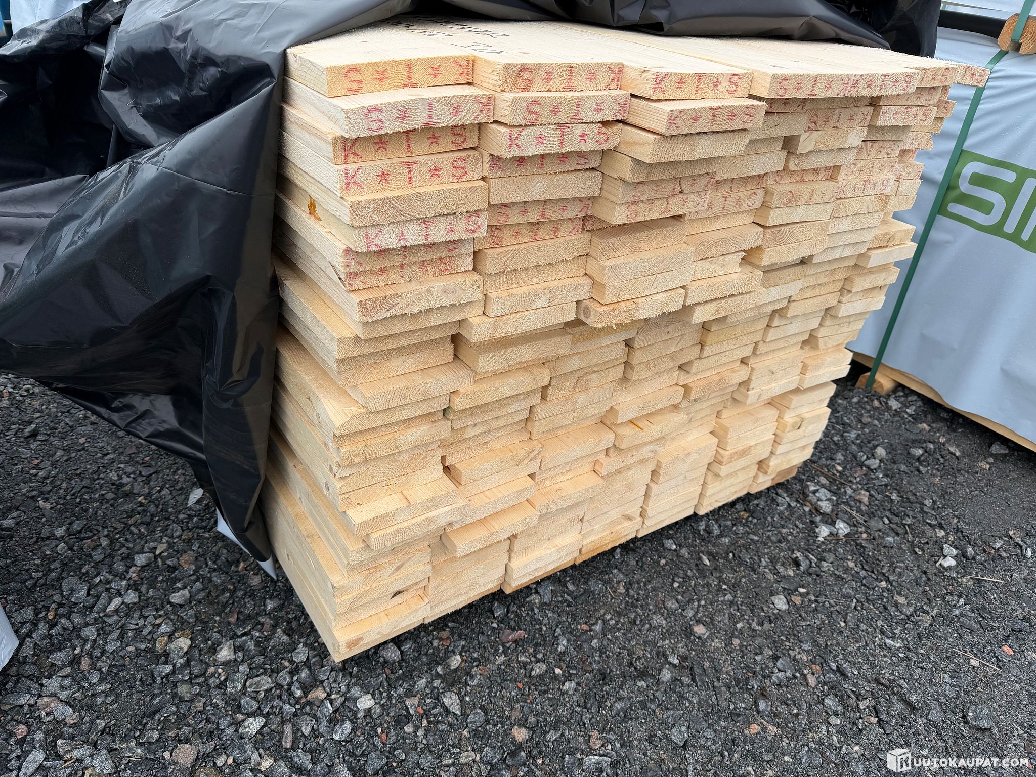 Monikäyttöistä sahatavaraa tehtaan paketissa.