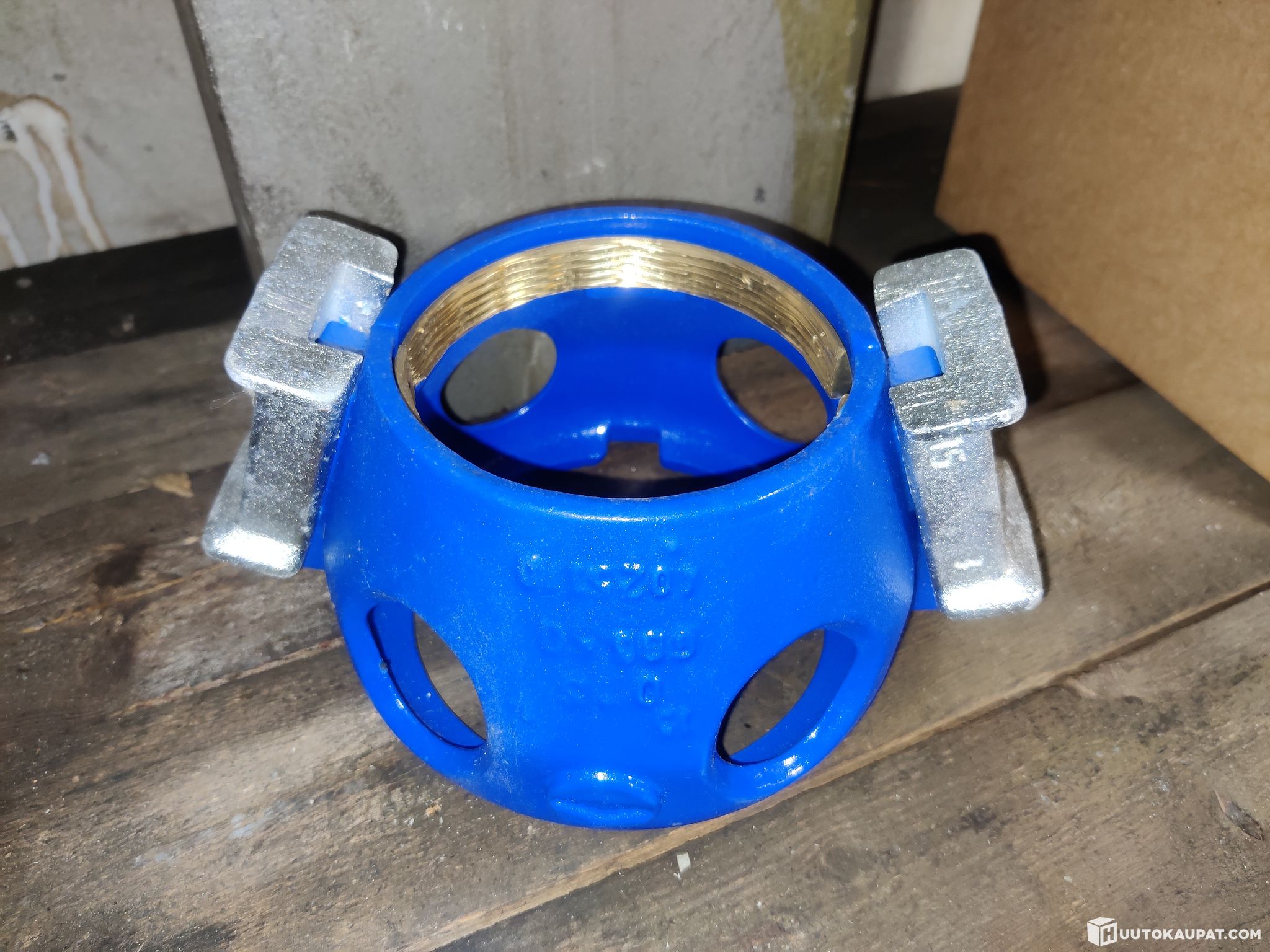 Muhvilukko muhviventtiileille sekä PE- ja PVC-putkille. Epoksipinnoitettua GJS-pallografiittivalurautaa, sinkityt kiilat. Erikoiskuvioitu lukkorengas messinkiä.