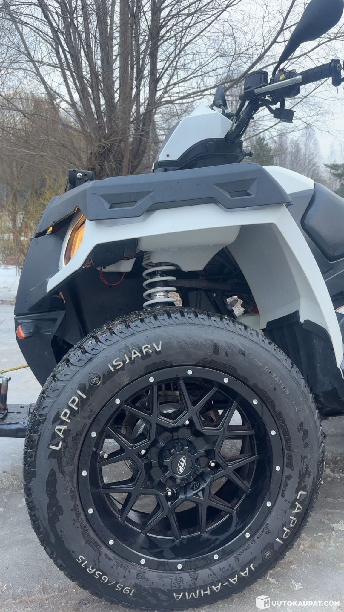 Hyvä Polaris jokapäiväisestä ajosta, hyvät talvirenkaat ITP vanteilla, maastorenkaat kulahtaneet peltivanteilla, huollettu kuten pitää ja tämä siis kaasarikoneella käynnistyy hienosti kelillä kuin kelillä, T-kortilla ajettava 40km/h malli (rajoitin helppo ohittaa esim. off-road käyttöön)