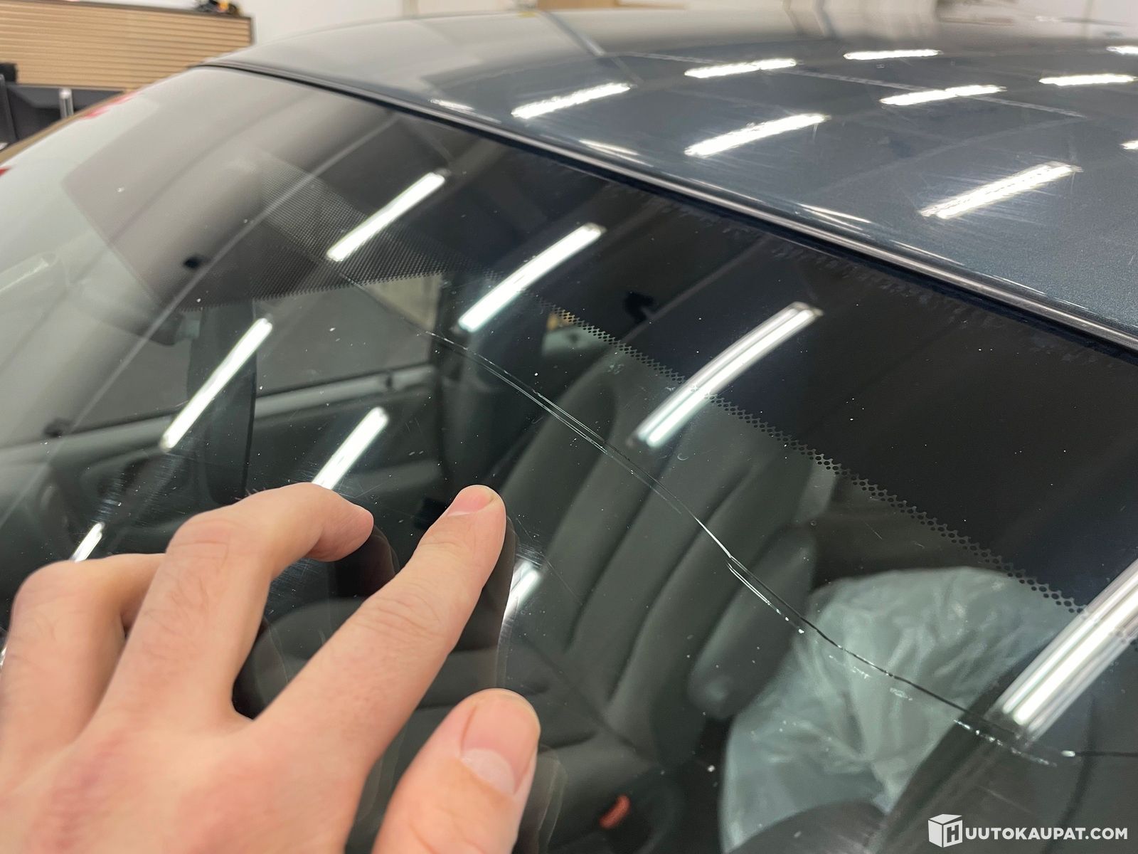Tuulilasi yläreunasta halki