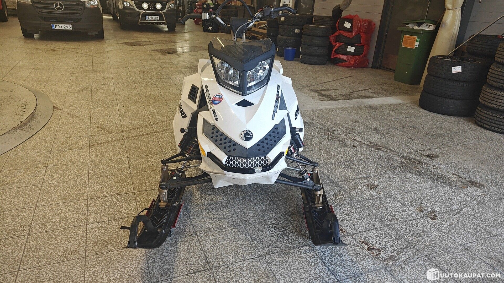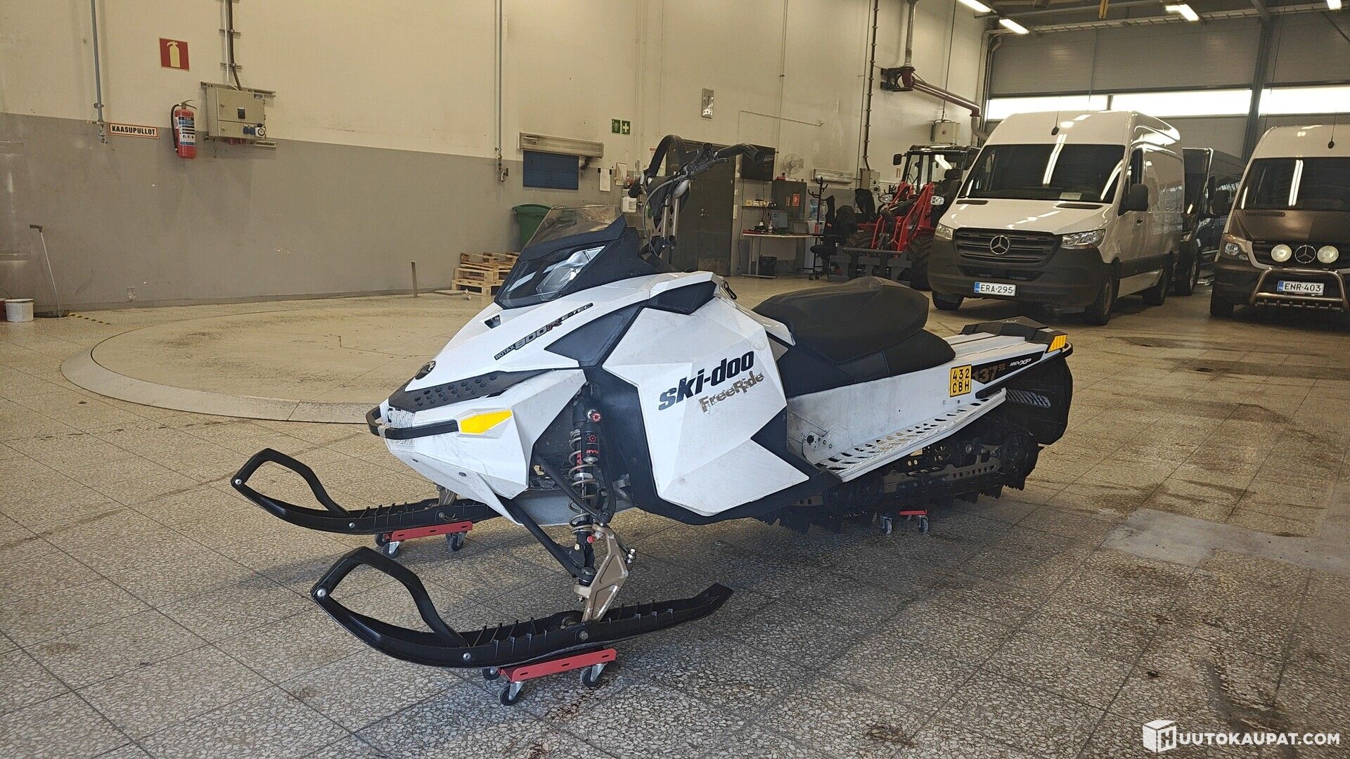 Huutokaupataan kuvien mukainen Ski Doo, Kelkalla on tehty lyhyt testilenkki parkkipaikalla, ja tuntuu toimivan normaalisti. Iän tuomaa kulumaa reippaasti. Käy näytisti eikä moottorista kuulu ylimääräisä kolinoita.