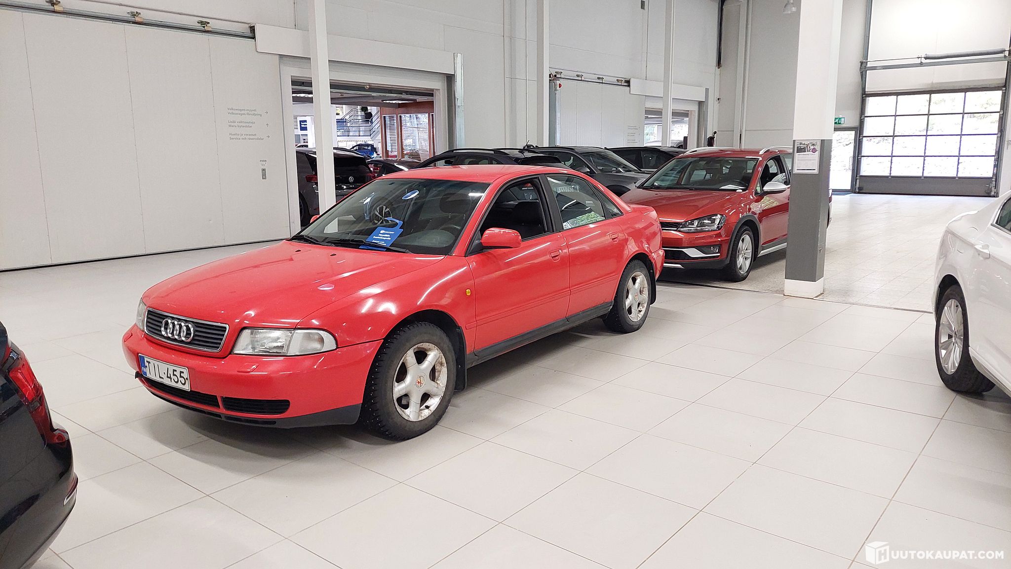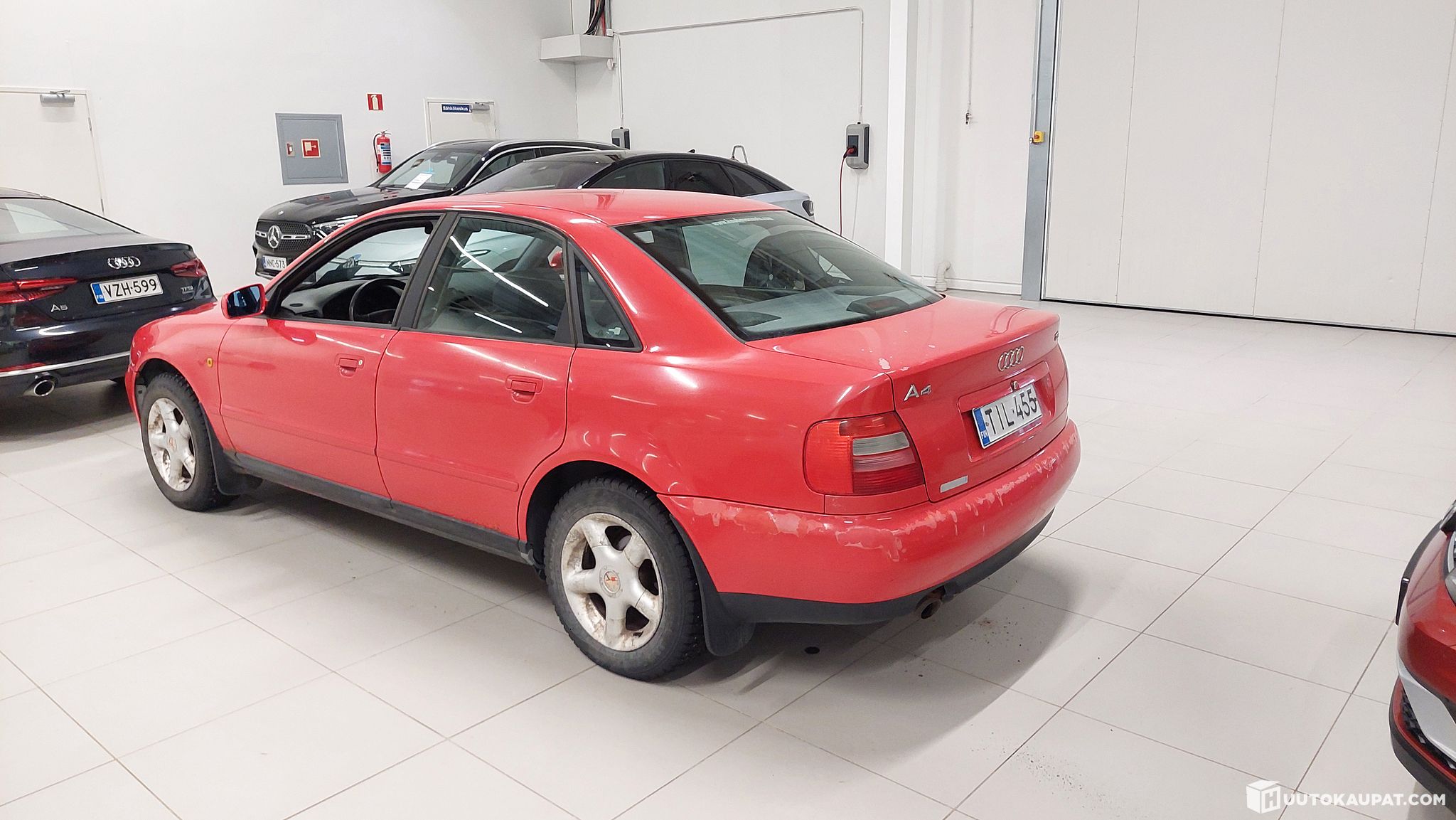 Tästä huutoon legendaariselta 90 luvulta teknistä etumatkaa oleva Audi A4 1,8 sedan manuali vuosimallia -1999 vuoden leimalla! Autosta vasta uusittu jarruputket ja letkut ja jousia pensasuodatin ja jarrunestesäiliö ym noin 2000e edestä joten pitäisi niiltä osin olla kunnossa. :) Tämän jos entisöisi koriltaan vielä siistimmäksi sen saisi 3 vuoden päästä museokilpiin. Molemmat etulokasuojat ottaneet hieman ruostetta, vänkärin puolella pahemmin, uusilokasuoja noin 60-70 e + maalaus. Muuten koriltaan lähinnä lakkavikaa yms ja takaoven ja kuskin etuoven alareunoissa ruosteen alkua. Sisältä auto ikäisekseen ehjä ja siisti lähinnä vaatisi penkkien pesua jos paremman haluaa. Ollut vanhemman miehen ajossa viime vuodet ja tällä ei ole kovin paljoa ajettu viime vuosina, 9 vuodessa noin 10 tkm ajettu. Ihan toimiva auto ja kone käy nätisti ja kytkin pitää hyvin ja vaihteet menee hyvin päälle ja ajolleen vaikuttaa olevan kunnossa, eikä vika valoja pala mittaristossa.