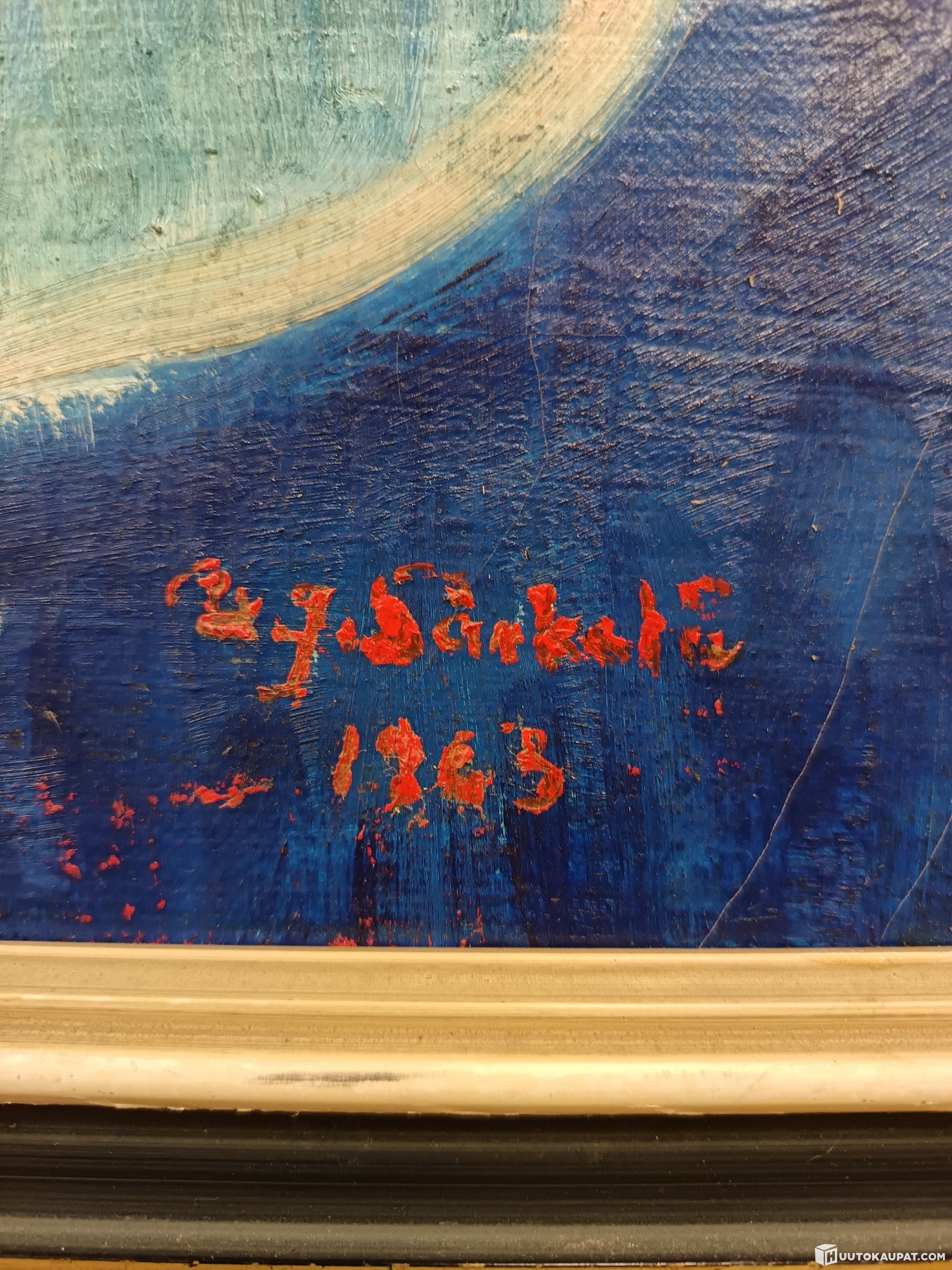 Taulussa ja kehyksissä kulumaa.