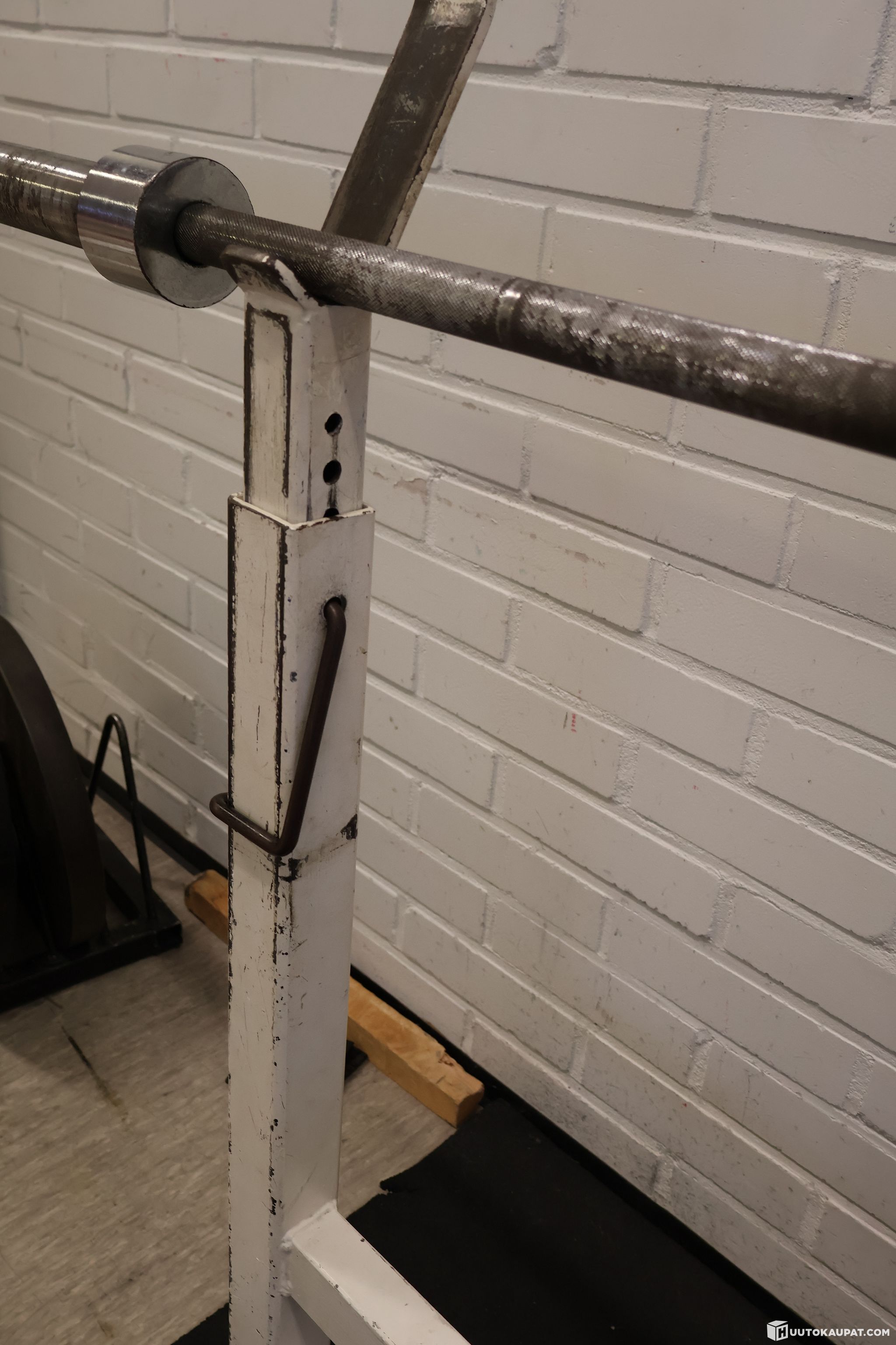 Hyrynsalmen vanhalta kuntosalilta penkkipunnerruspenkki ja suora 20kg tanko sekä hauiskääntöön tarkoitettu tukipenkki ja mutkatanko. Levypainot eivät kuulu kauppaan.