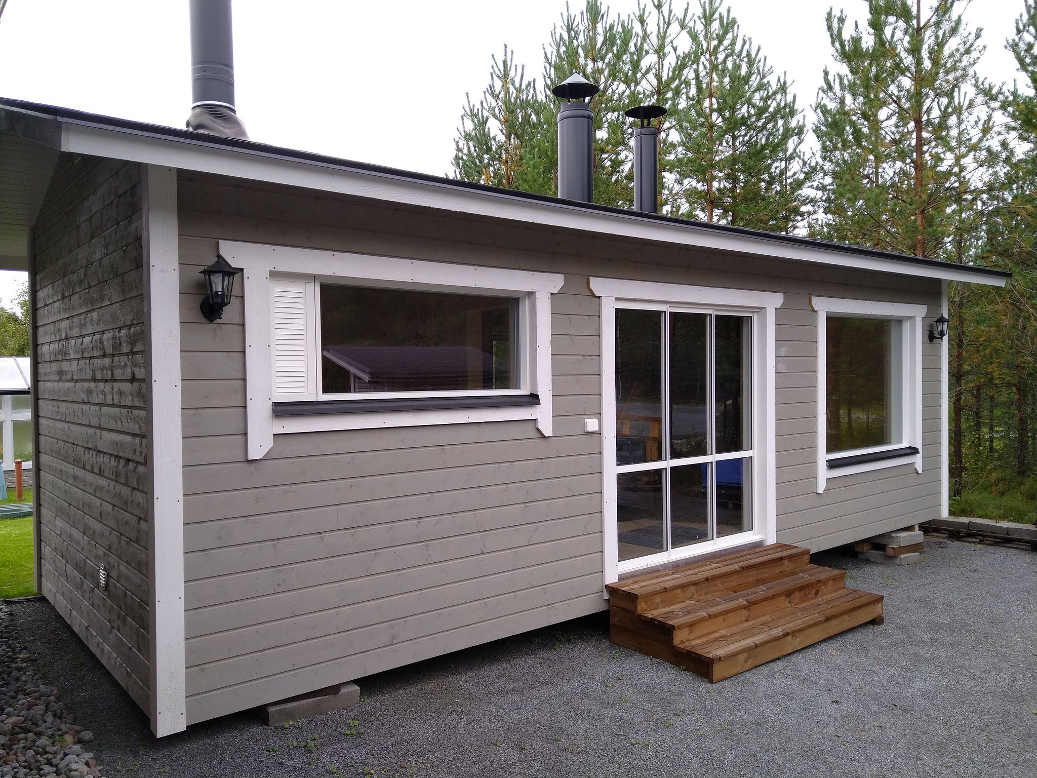 Sijaitsee ison parkkipaikan reunassa asfalttitien varrella. Helppo sijainti.