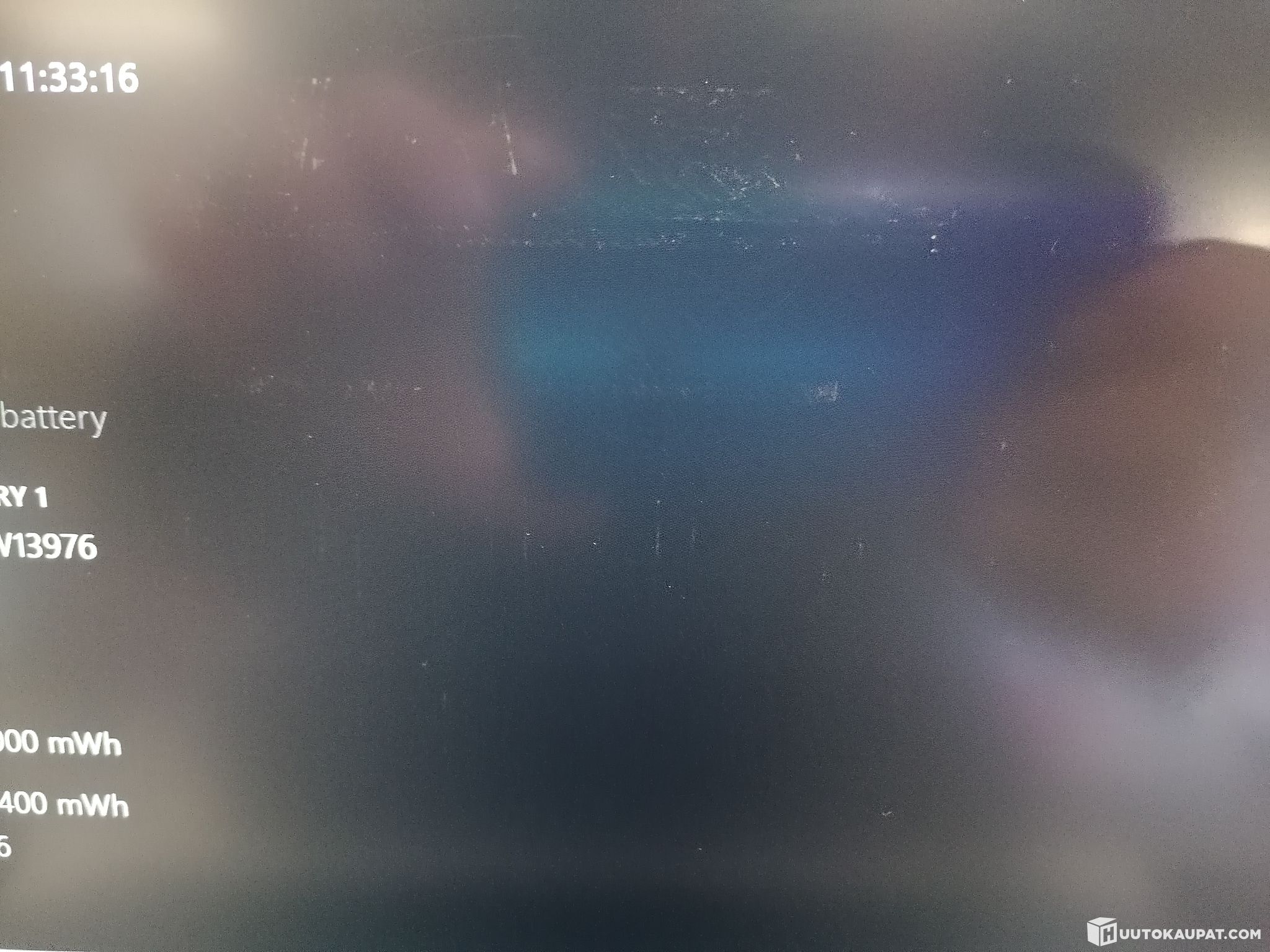 Kannettava on käytetty ja muuten pääosin siistissä kunnossa, mutta näytössä on painauma jälkeä, joka erottuu päällä ollessa, erottuu pääosin viimeisessä kuvassa.