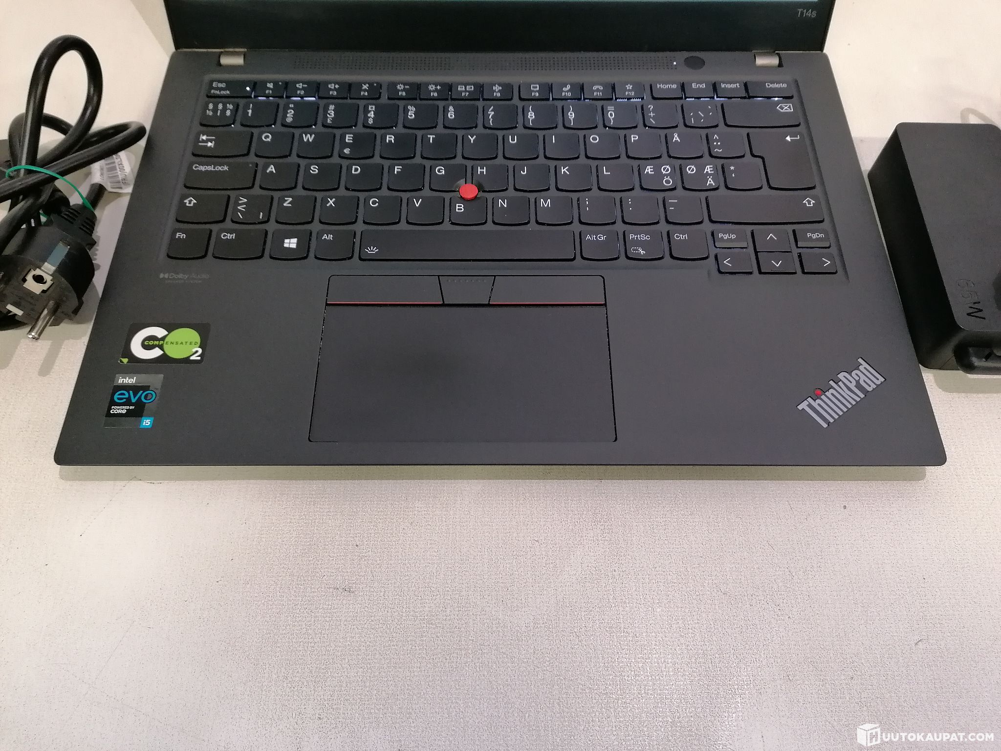 Mukana tulee koneeseen soveltuva Lenovon oma USB-C laturi.