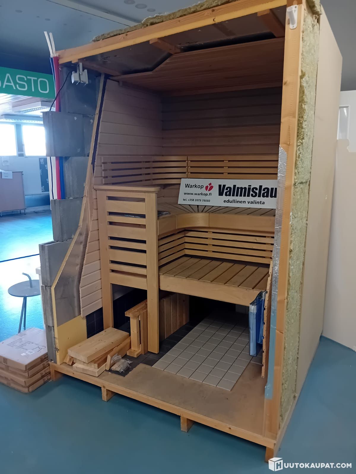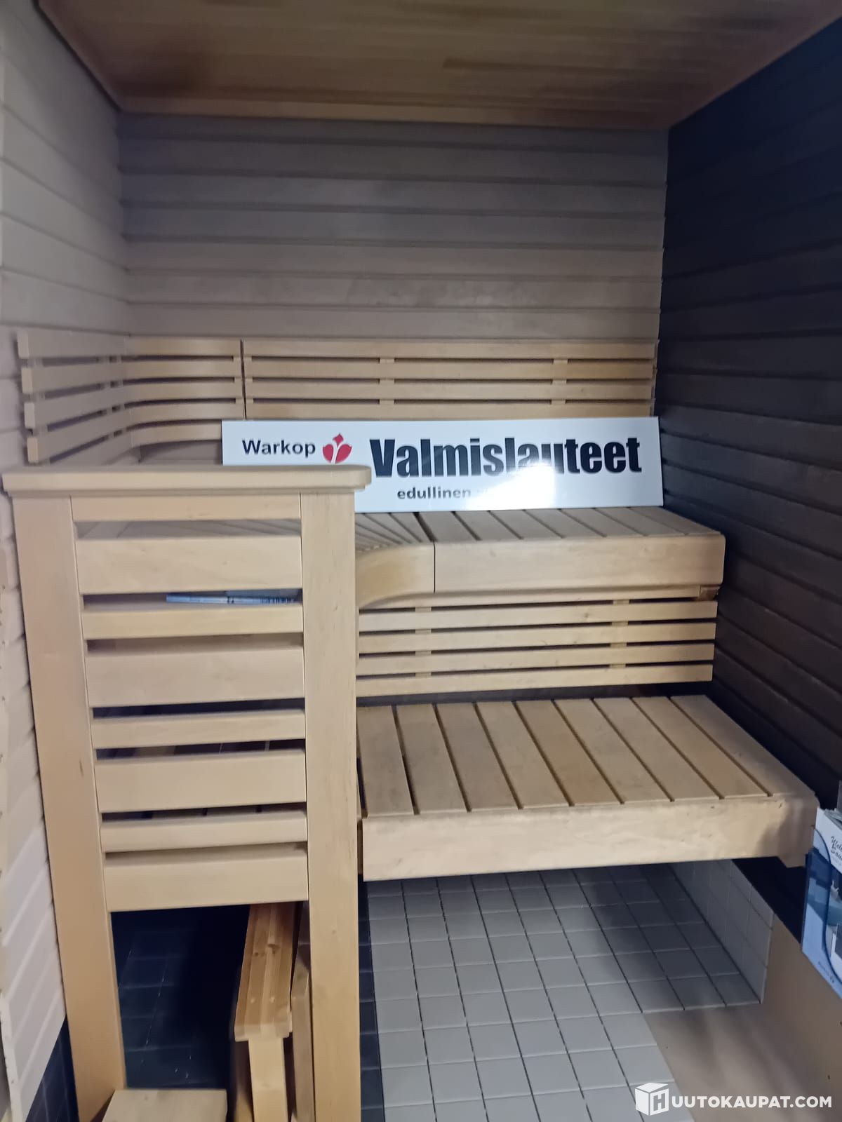 Malli sauna ollut myymälässä rekvisiittana. Lauteiden leveys 1400mm.