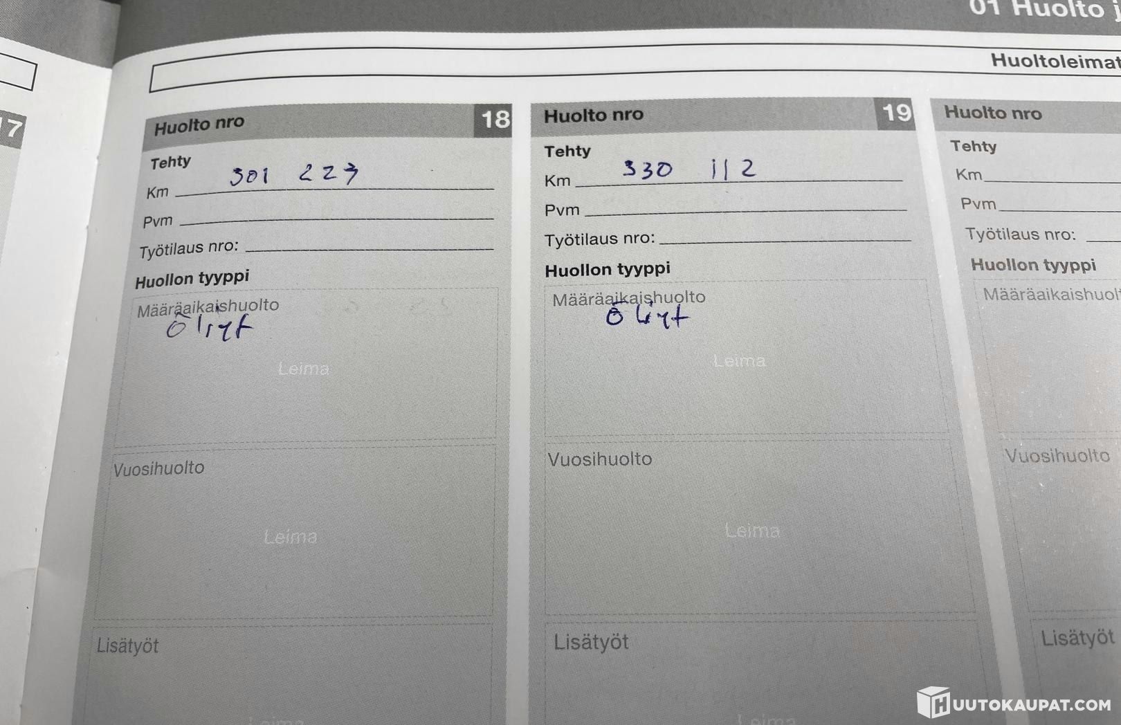 • Viimeisin huolto tehty: 330112km