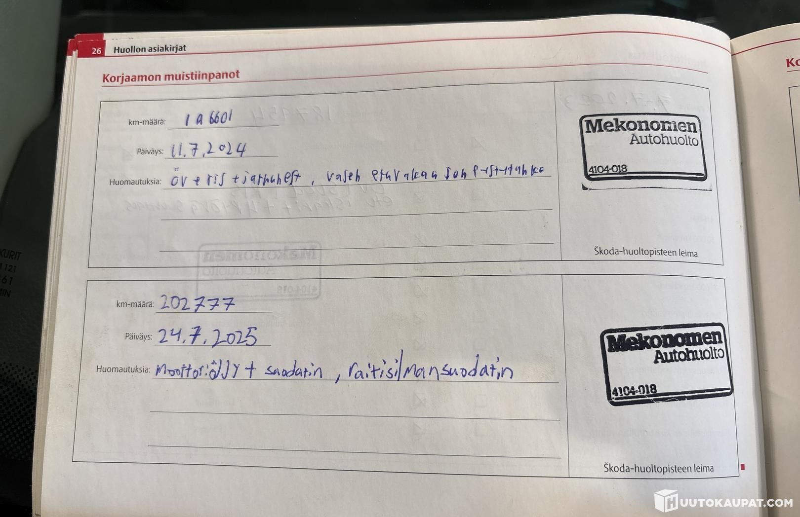 • Huoltokirja