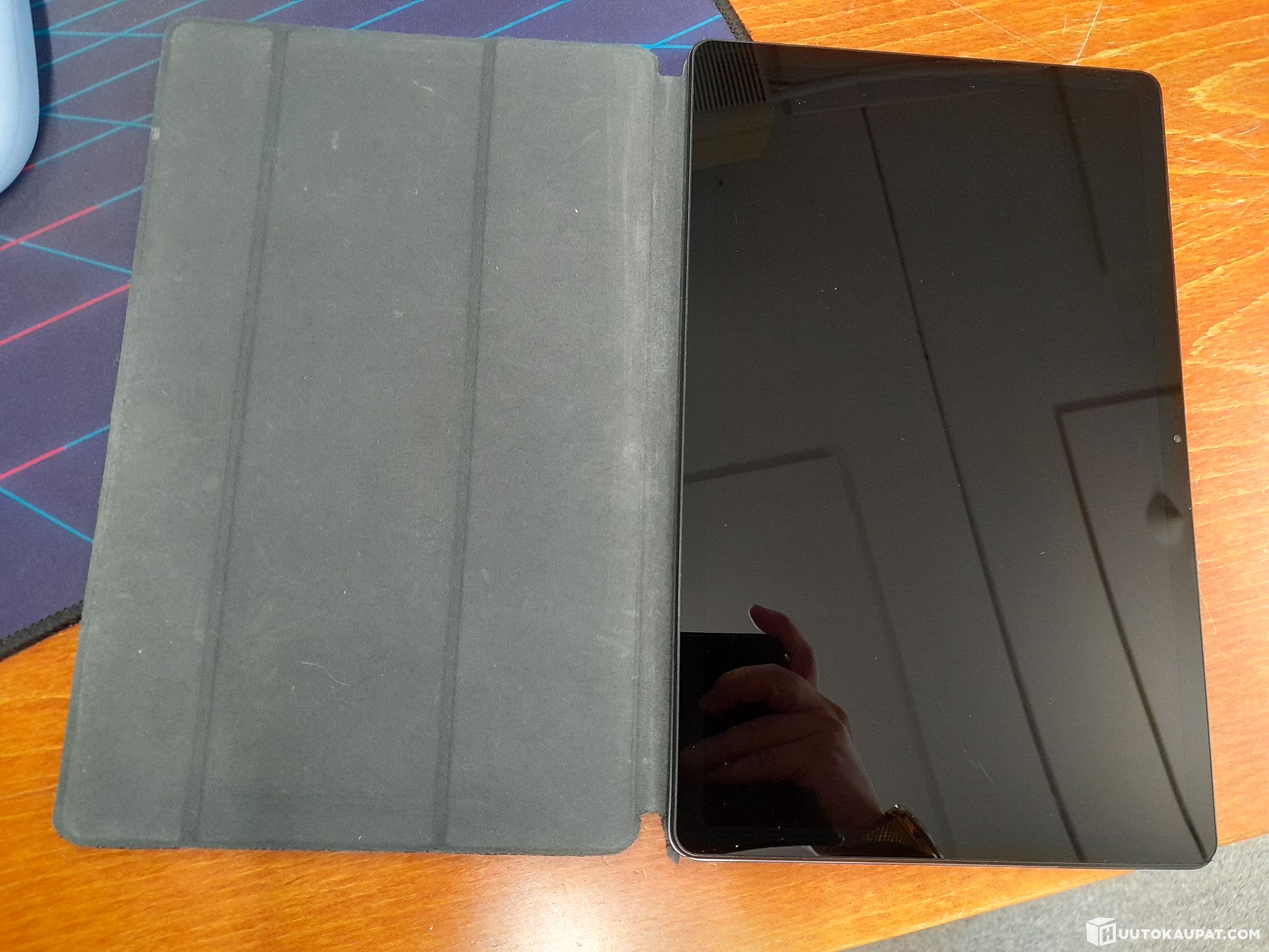 Käytetty, suojakotelo kulunut ja näytössä pientä huomaamatonta pintakulumaa mutta muuten ok. Mukana suojakotelo ja laturi.