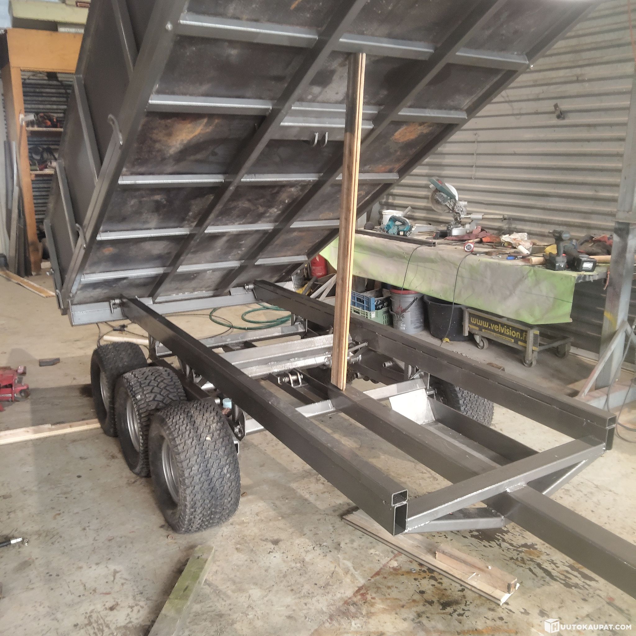 Kippikärry, kantava, kevyt kantava ja monikäyttöinen kärry. Minkä perään tahansa. Lavamitat 3.3x1.63m. Myydään alvilla tai ilman alvia