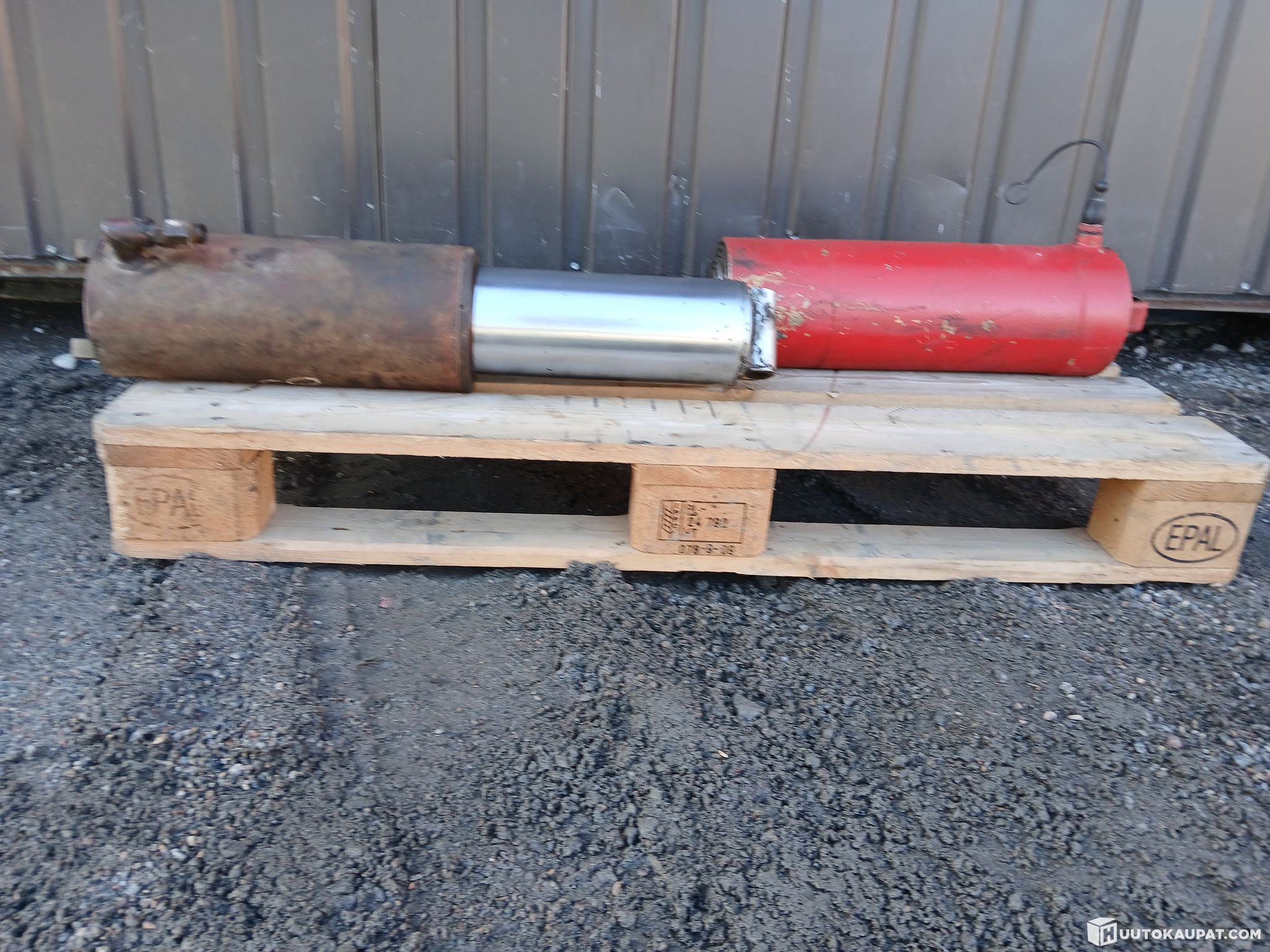 Kaksi sylinteriä kippisylinterissä korvat päässeet naputtamaan putkien päitä läjään.kippiä ei ole kokeiltu toimiiko.toki voisi saada korjattua purkamalla ja sorvaamalla päitä siistimmäksi.toki voi toimia näinkin.toinen tunkki päällisin puolin kunnossa.ei ole kokeiltu.tästä tunkit erilaisiin projekteihin.tunkeille saadaan tarvittaessa järjestettyä kuljetus koko suomen alueella kotipihaan asti toimitettuna.kohteen noudosta ei peritä mitään noutomaksuja/noutokuluja.noutoajankohta saadaan järjestymään joustavasti myös iltaisin ja viikonloppuisinkin.noudolla ei myöskään ole kiirettä saadaan sovittua joustavasti tarvittaessa.
