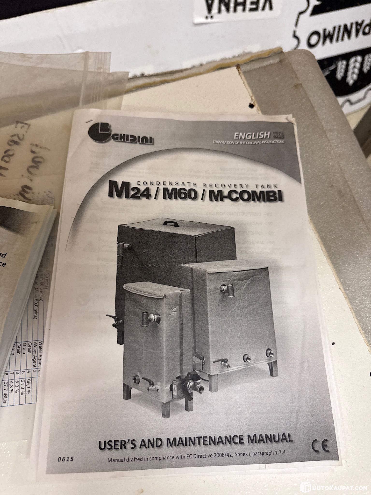 • kondenssiveden keräys- / erotussäiliö Ghidini M24/M60 -tyyppi