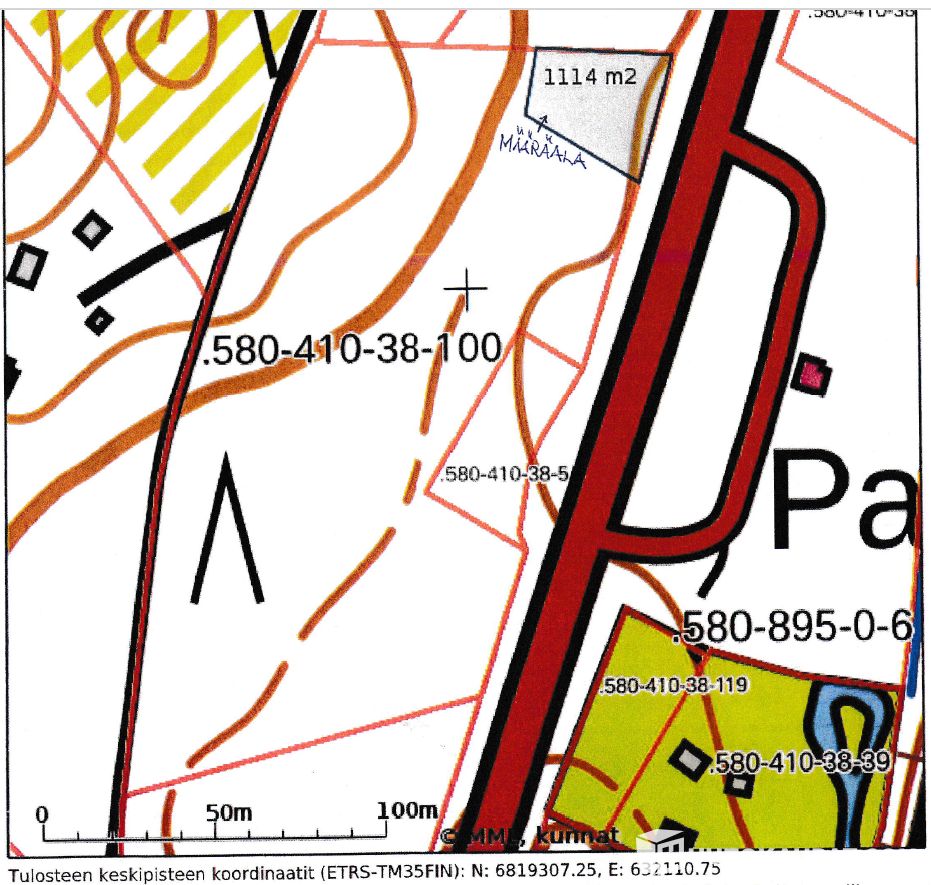 Myytävän tilan pinta-ala on n. 2,0 ha. Tilasta on erotettu oheiseen karttaan merkitty määräala n. 0,11 ha), jonka lohkomistoimitus on vielä kesken. Lohkomiskustannukset maksaa tilan aikaisempi omistaja.