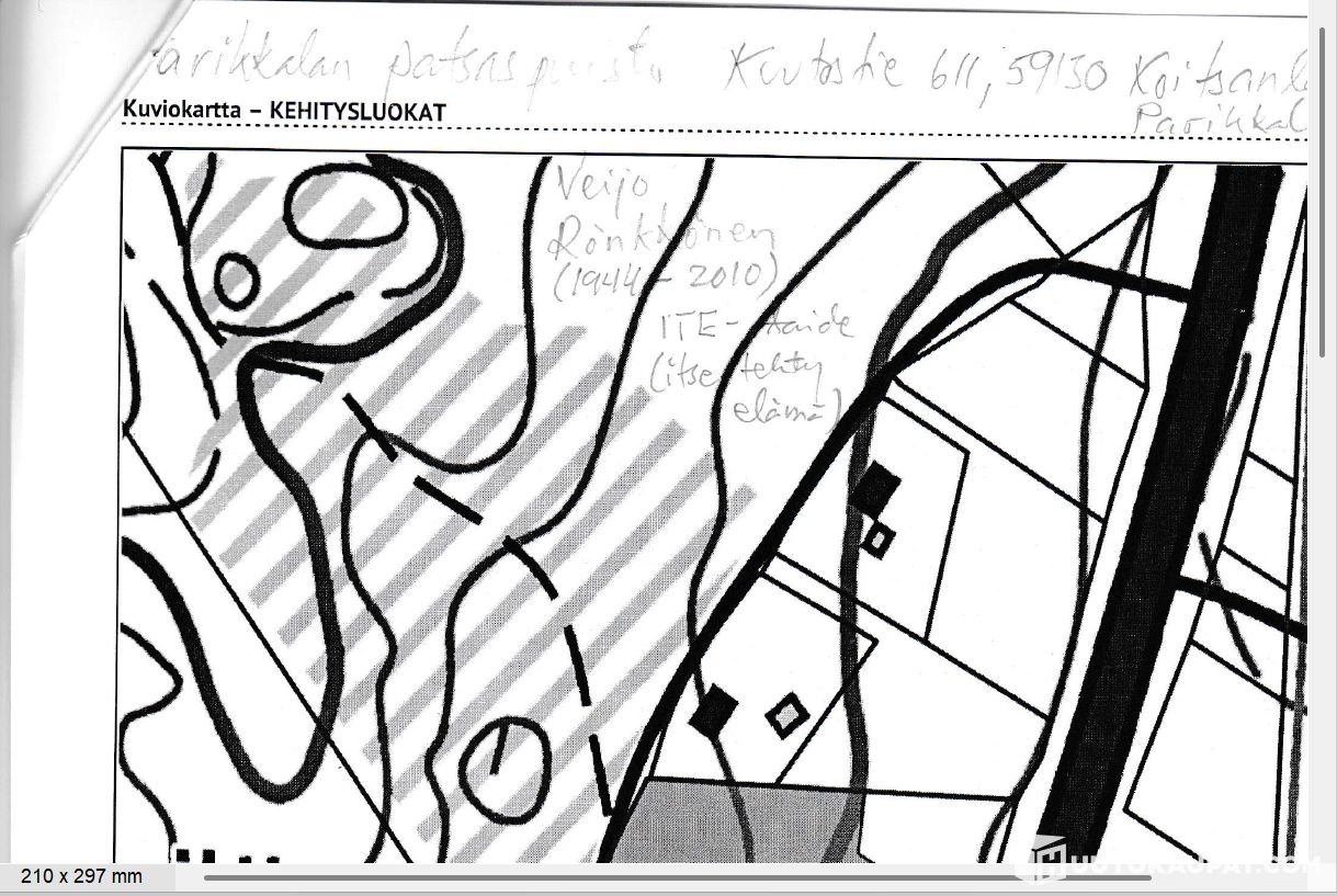Sijainti 6-tien varrella vastapäätä Parikkalan patsaspuistoa ja sen P-paikkaa. Tieyhteys tilalle Likolahdentieltä.